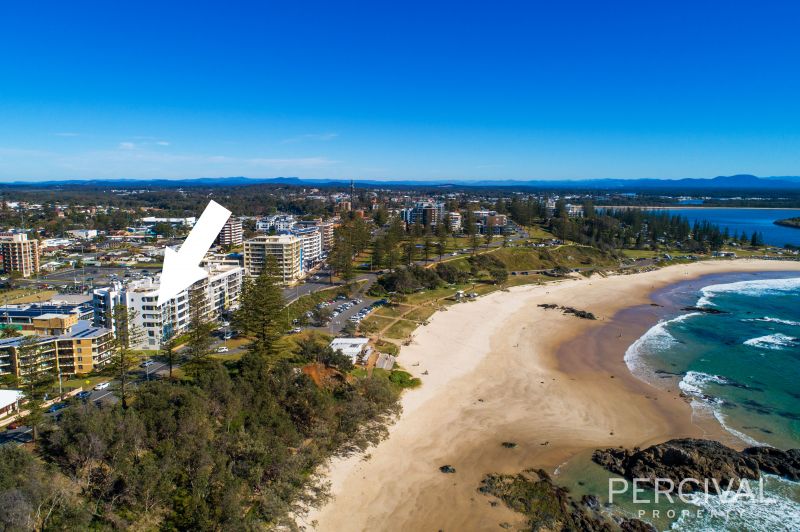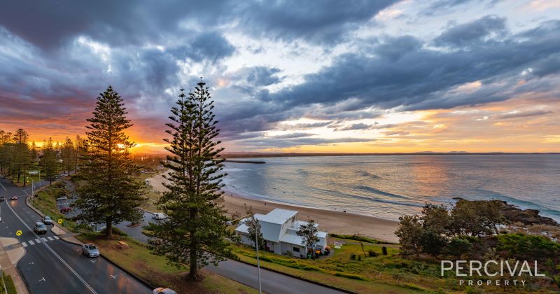 "Sandcastle" building's vantage point in Port Macquarie's vibrant township provides uninterrupted views… Overlooking the iconic breakwall, you can gaze north to Point Plomer, west to the mountains and east to the chameleon brilliance of the Pacific Ocean and watch whales at play. Drenched in natural light through floor to ceiling glass, the apartment's floor plan is as special as its view.