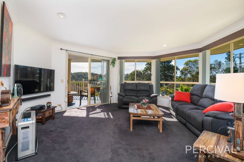A covered deck offering elevation and district views is accessed from the lounge, while a second covered deck is adjacent to the casual living and modern kitchen.