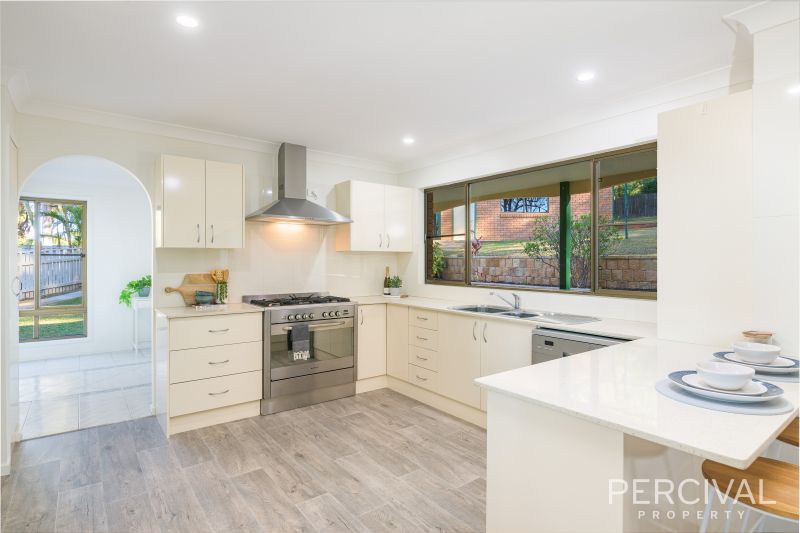 The Caesarstone kitchen with 900mm dual fuel upright cooker, dishwasher, large pantry and generous refrigerator cavity is central in a flexible floor plan.