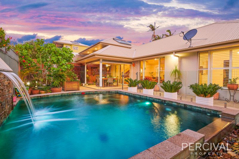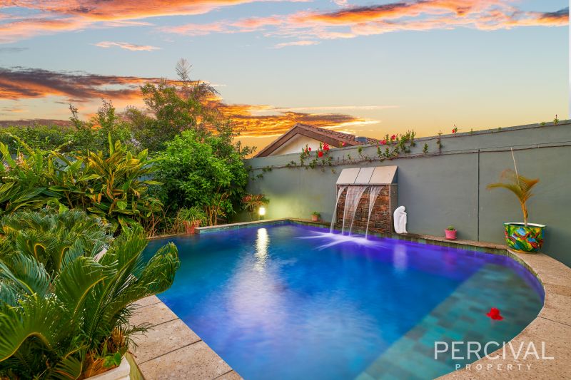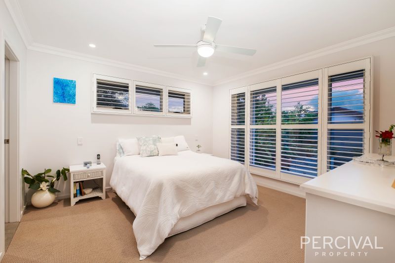 The master suite is a Zen like retreat with pool outlook, walk-in dressing room and luxury ensuite with freestanding bath. Complete with plantation shutters, ducted air conditioning, ceiling fans and security gated entry.