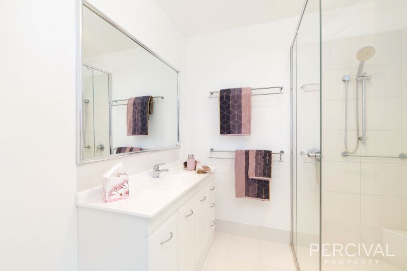 The well appointed granite kitchen is equipped with convenient mid height oven, Smeg cooktop, dishwasher, plumbed fridge cavity and step-in storage. Bathrooms are all in excellent order, fresh and contemporary!