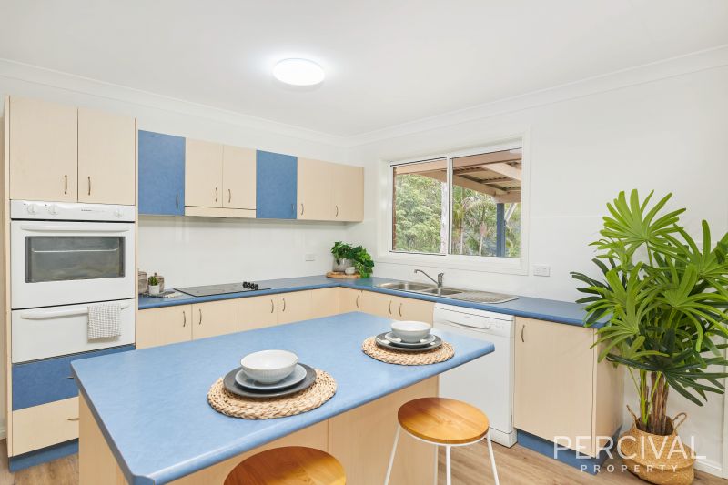 Fresh interiors present as new incorporating open plan living, spacious dining and a generous kitchen. Opening onto an elevated covered entertaining deck with a picturesque treed outlook, it is well appointed with island bench and abundant storage.