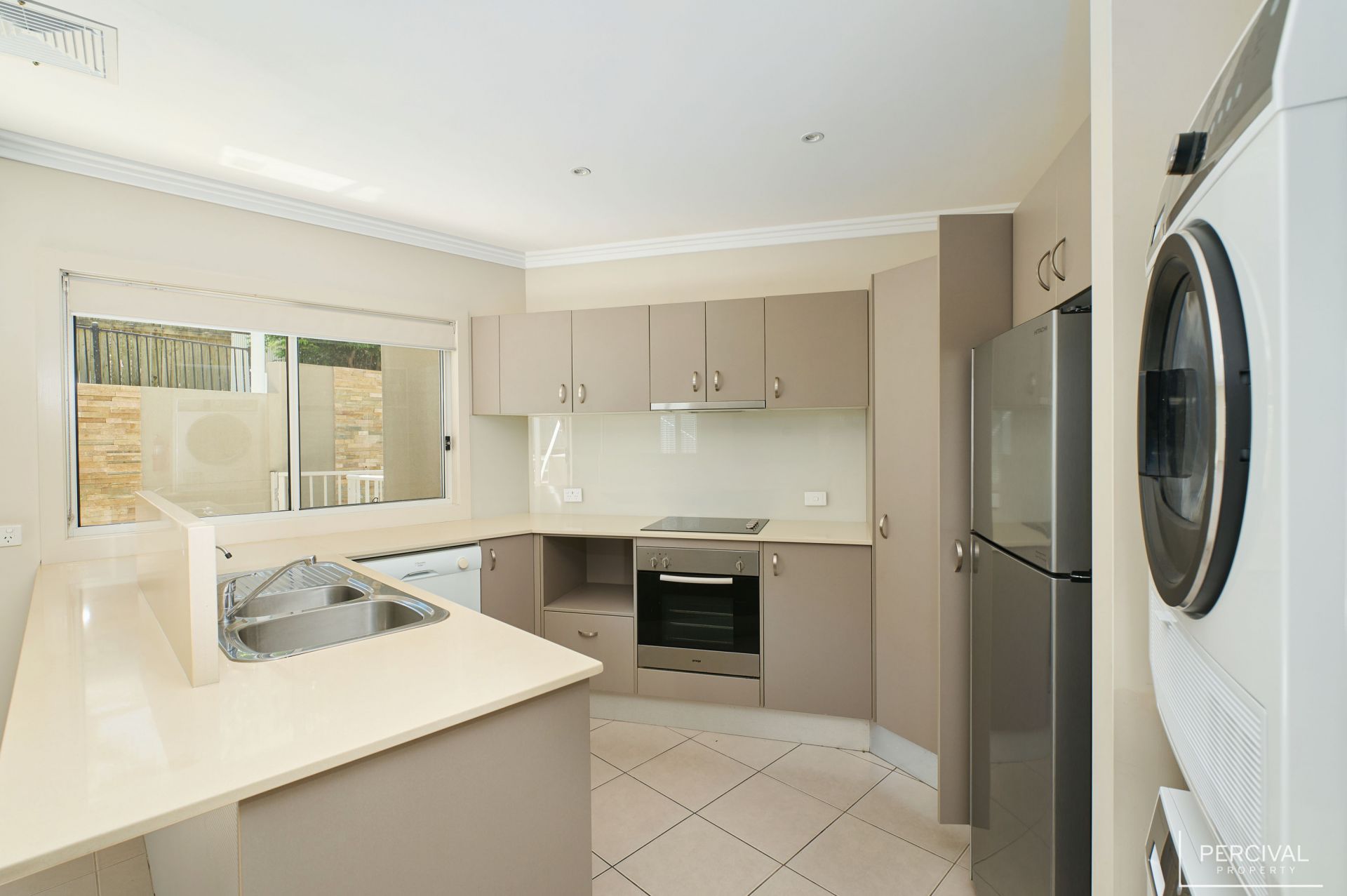 - Laundry located in kitchen with combination washing machine/dryer