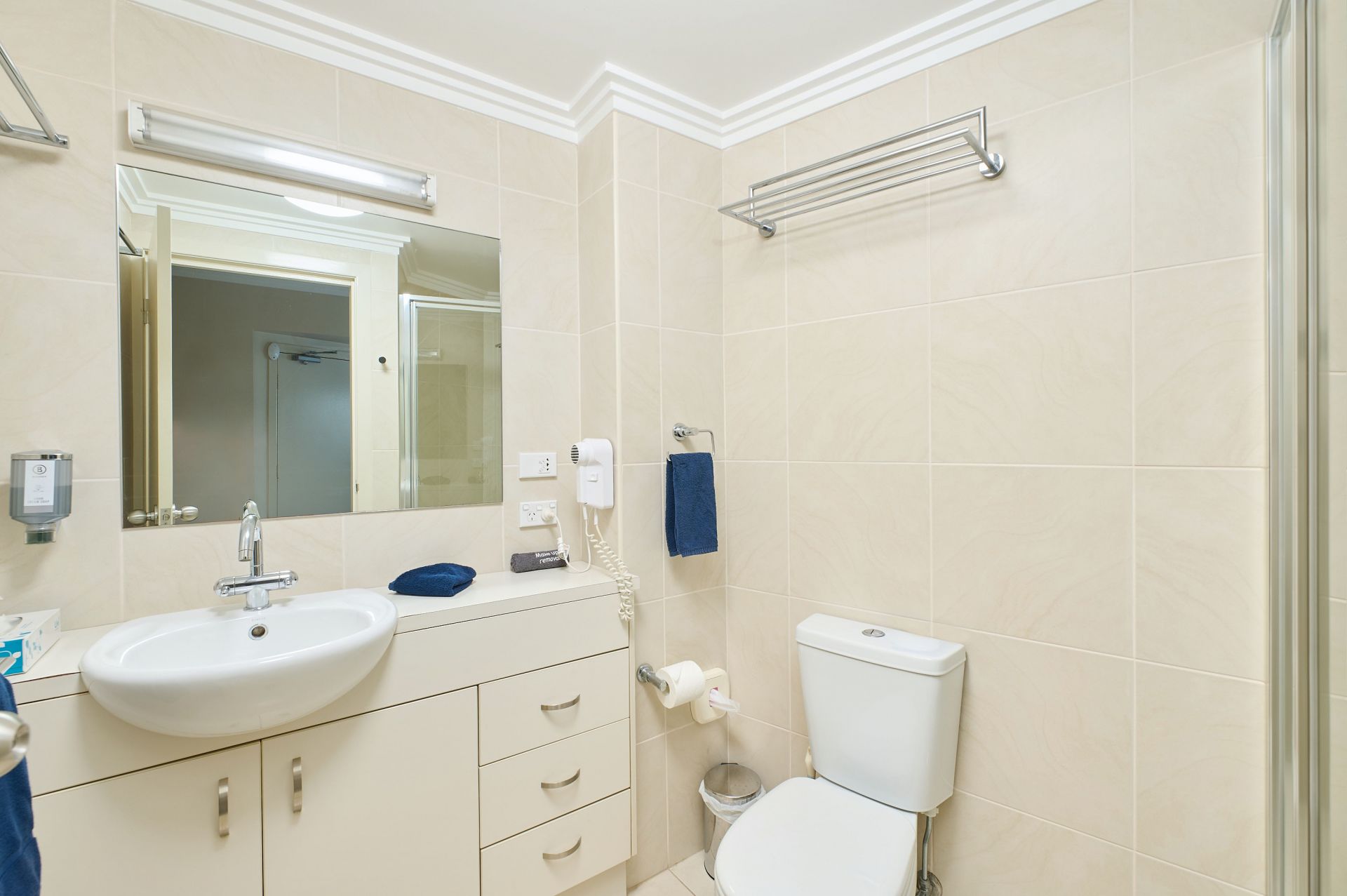 - Bathroom with shower and toilet