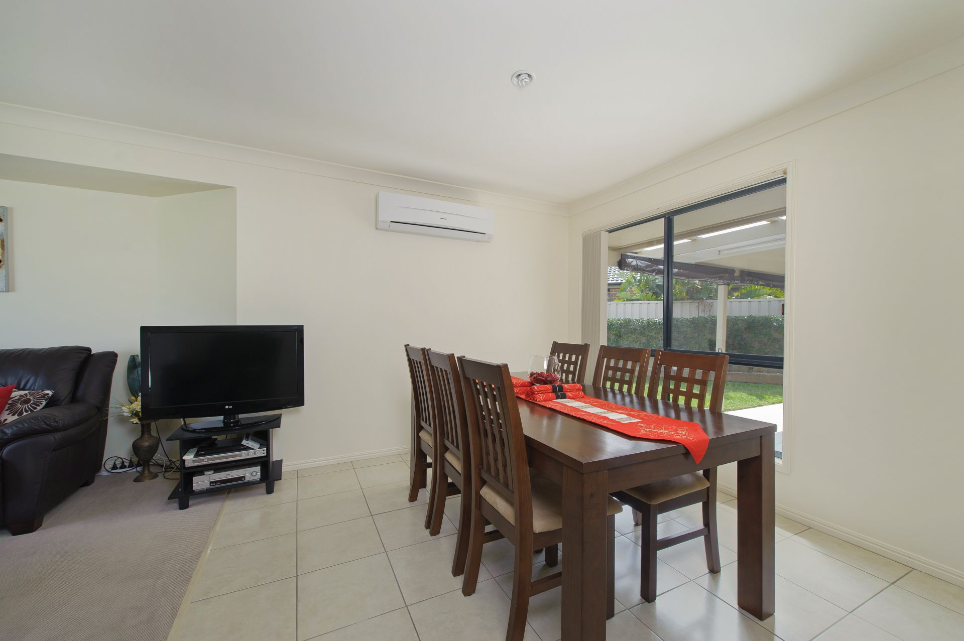 - Open plan living and dining with wall-mounted air conditioning