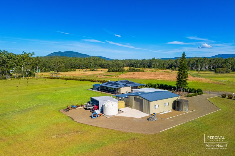 Positioned on an elevated parklike acreage with sweeping views of North Brother and Middle Brother Mountain, the 20.23 hectares (49.98 acres) features 233 meters of frontage to Herons Creek, offering access for smaller craft to navigate through to Queens Lake and the entire Camden Haven River System.