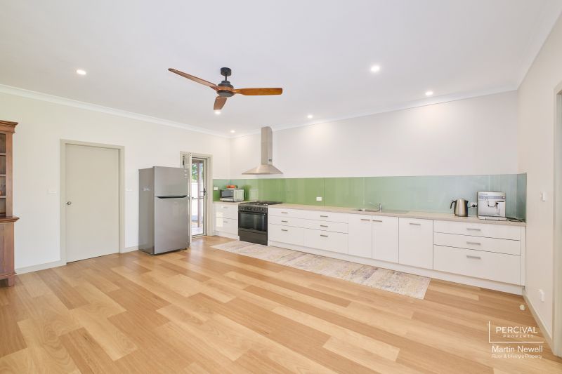 The property showcases a meticulously renovated 3-bedroom plus office homestead, boasting expansive living areas complemented by reverse cycle air conditioning and a slow combustion fireplace. Almost every window frame breathtaking rural and mountain vistas, while wide verandahs provide ideal spaces for entertaining amidst the tranquil parklike gardens.