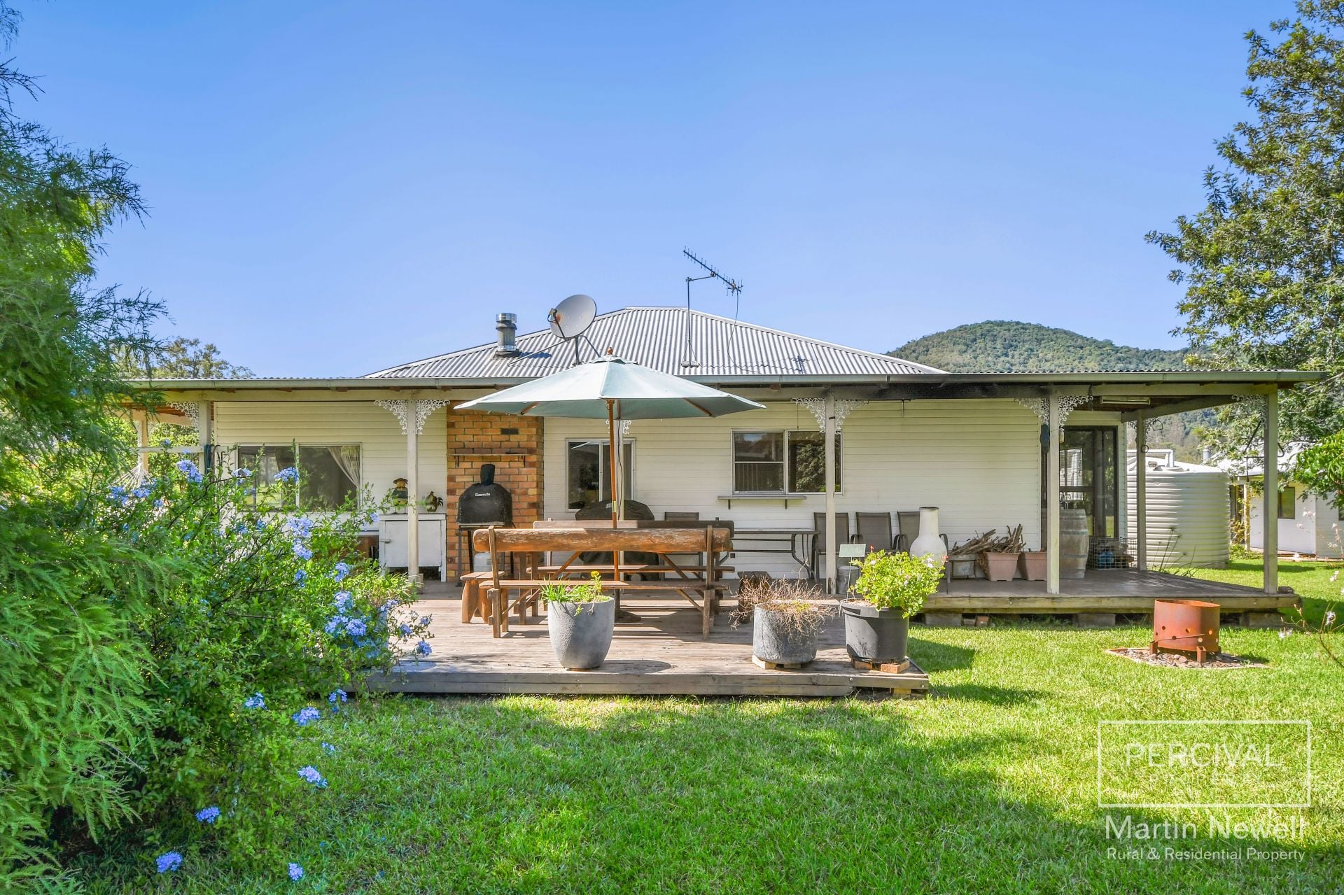 The property includes a 3-bedroom, 1-bathroom main residence with a spacious dining and lounge area and an inviting outdoor alfresco dining deck. An additional 2-bedroom, 1-bathroom cottage provides extra accommodation or potential on-farm income. The home and cottage area surrounded by sprawling lawns studded with fruit trees and a large pecan tree plus an enclosed highly productive veggie patch.