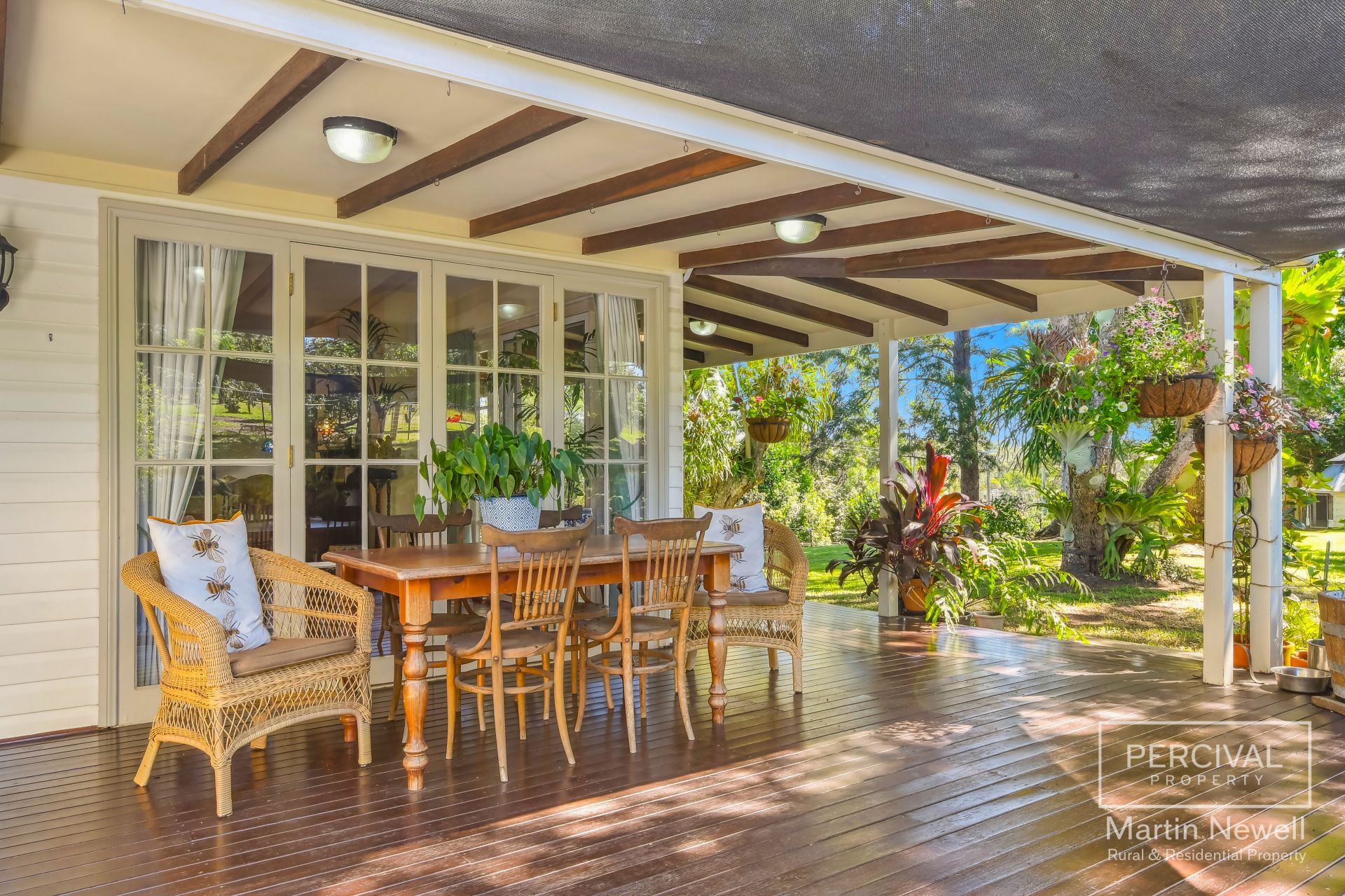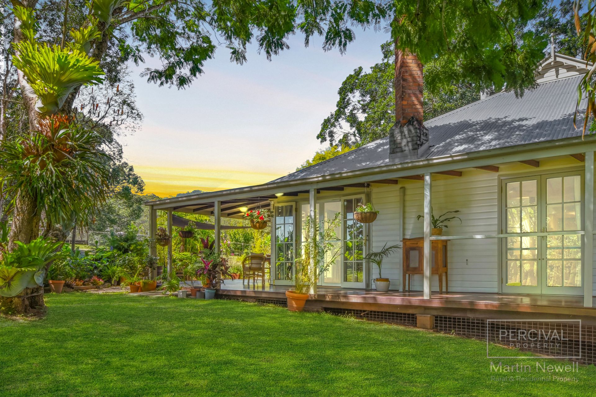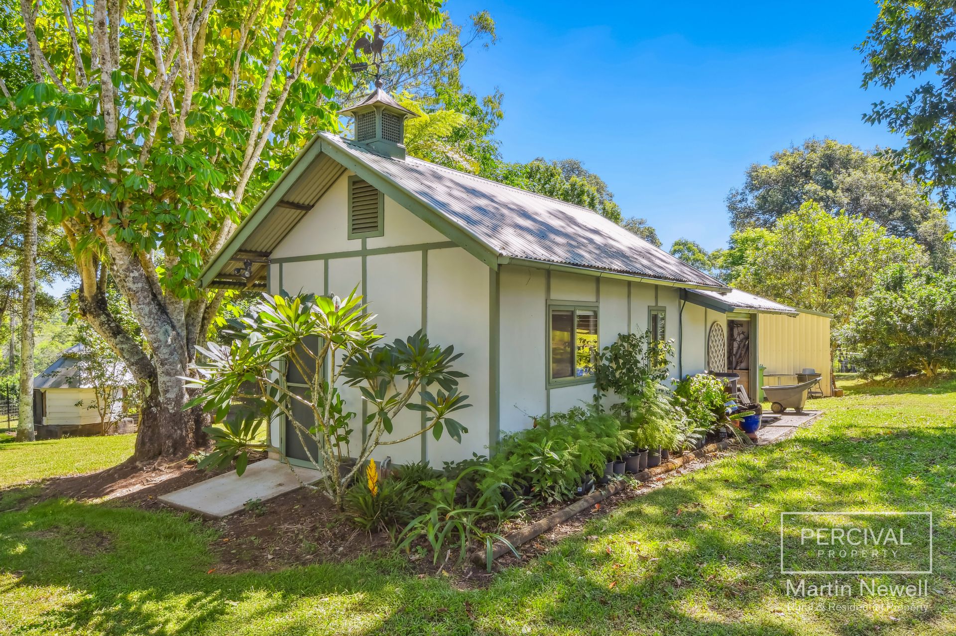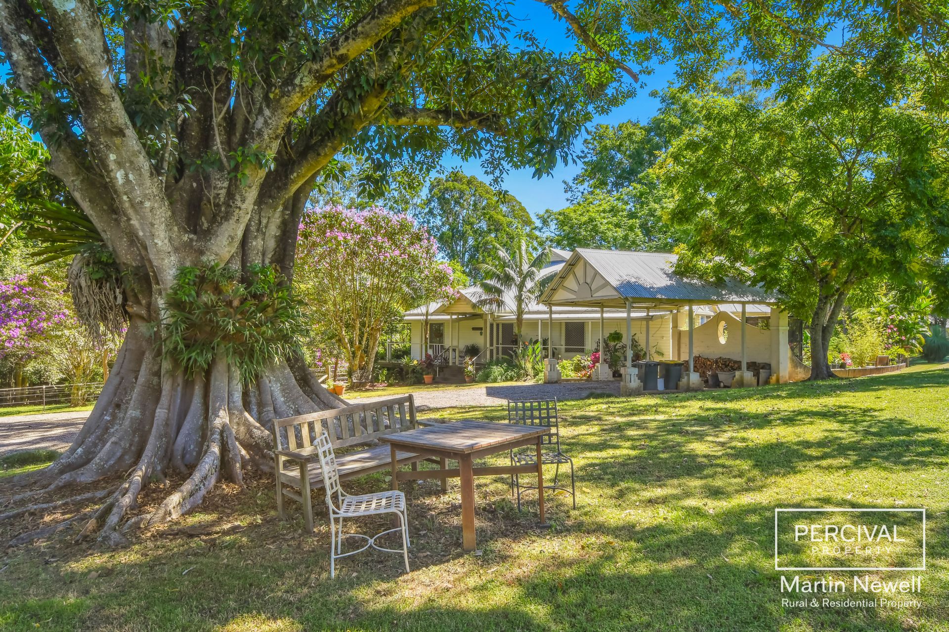 As you enter the property your greeted by a park-like landscape, featuring lush lawns and mature trees, including a majestic fig tree, over 30 fruit trees and a sub-tropical rainforest area.