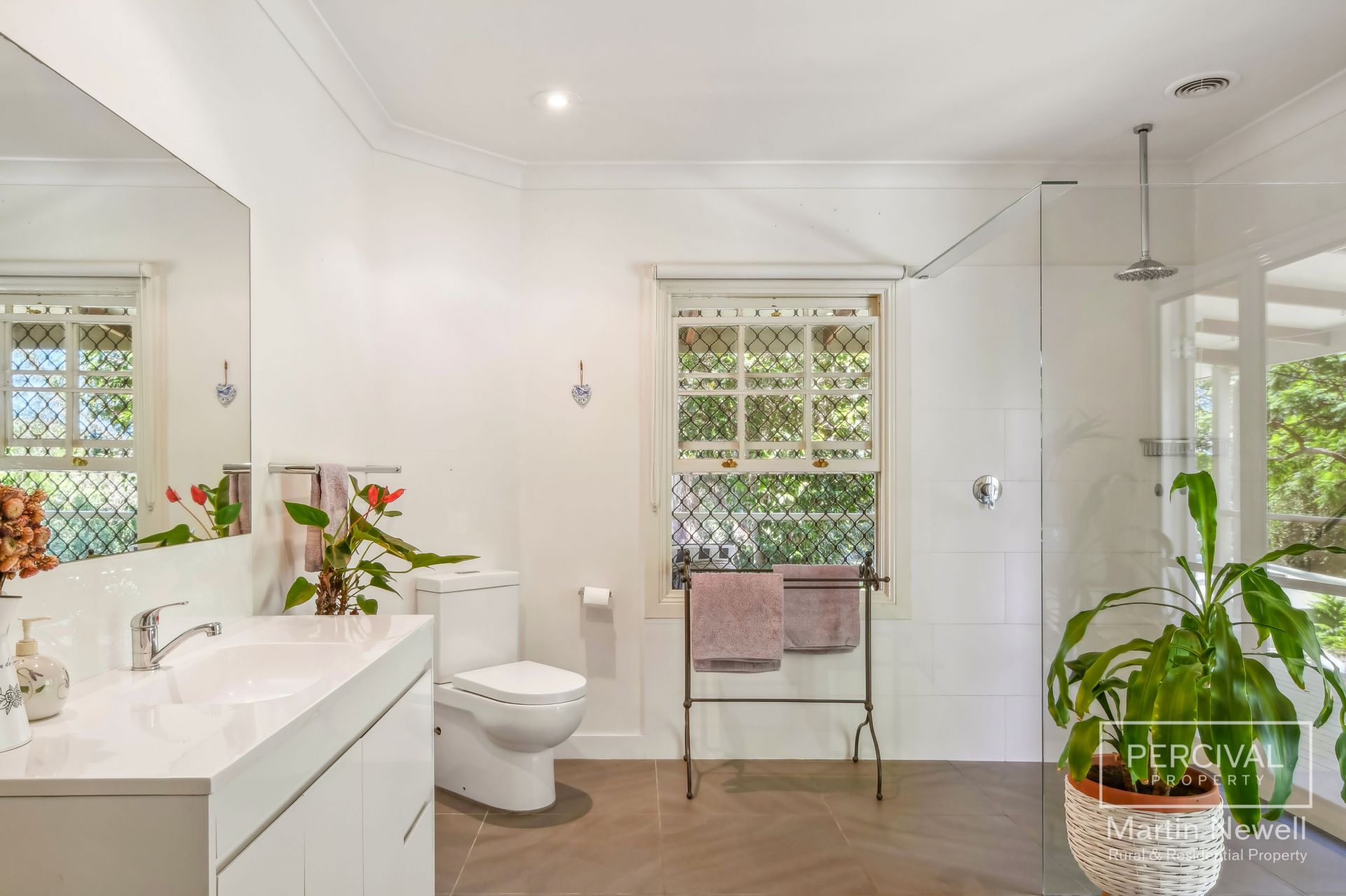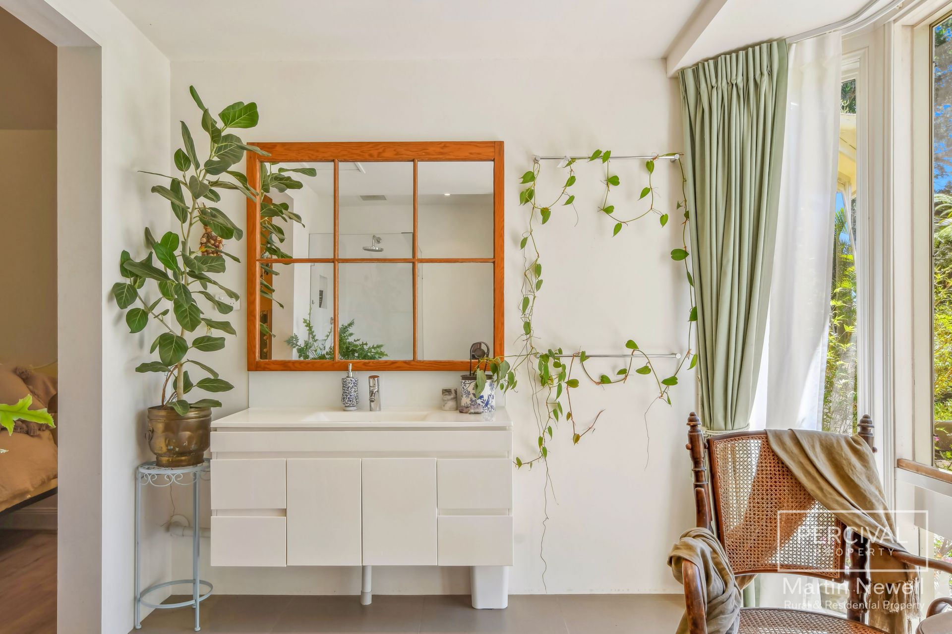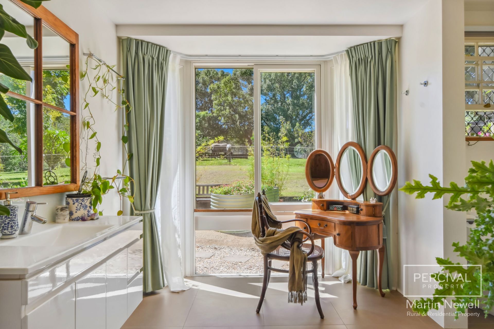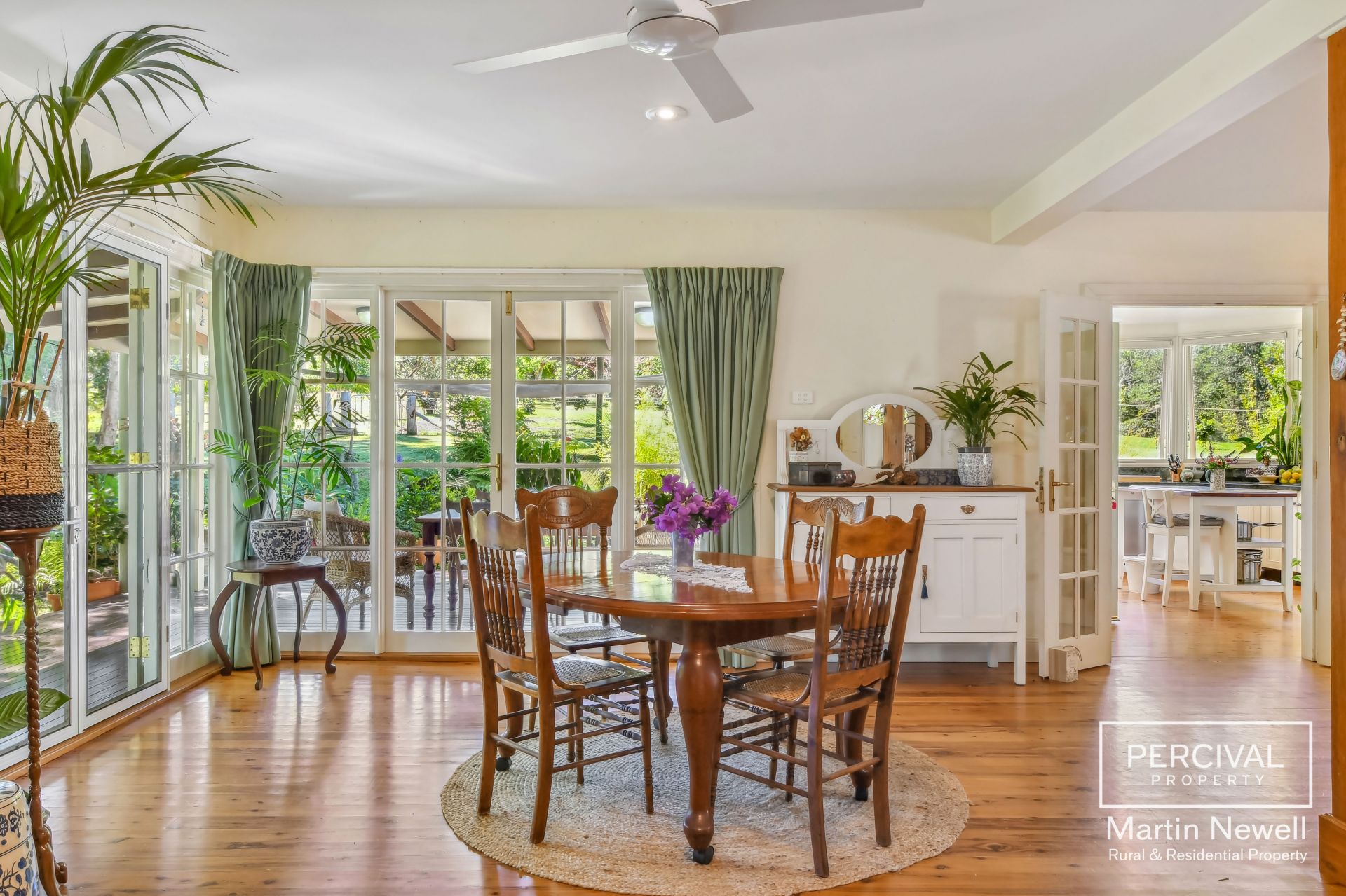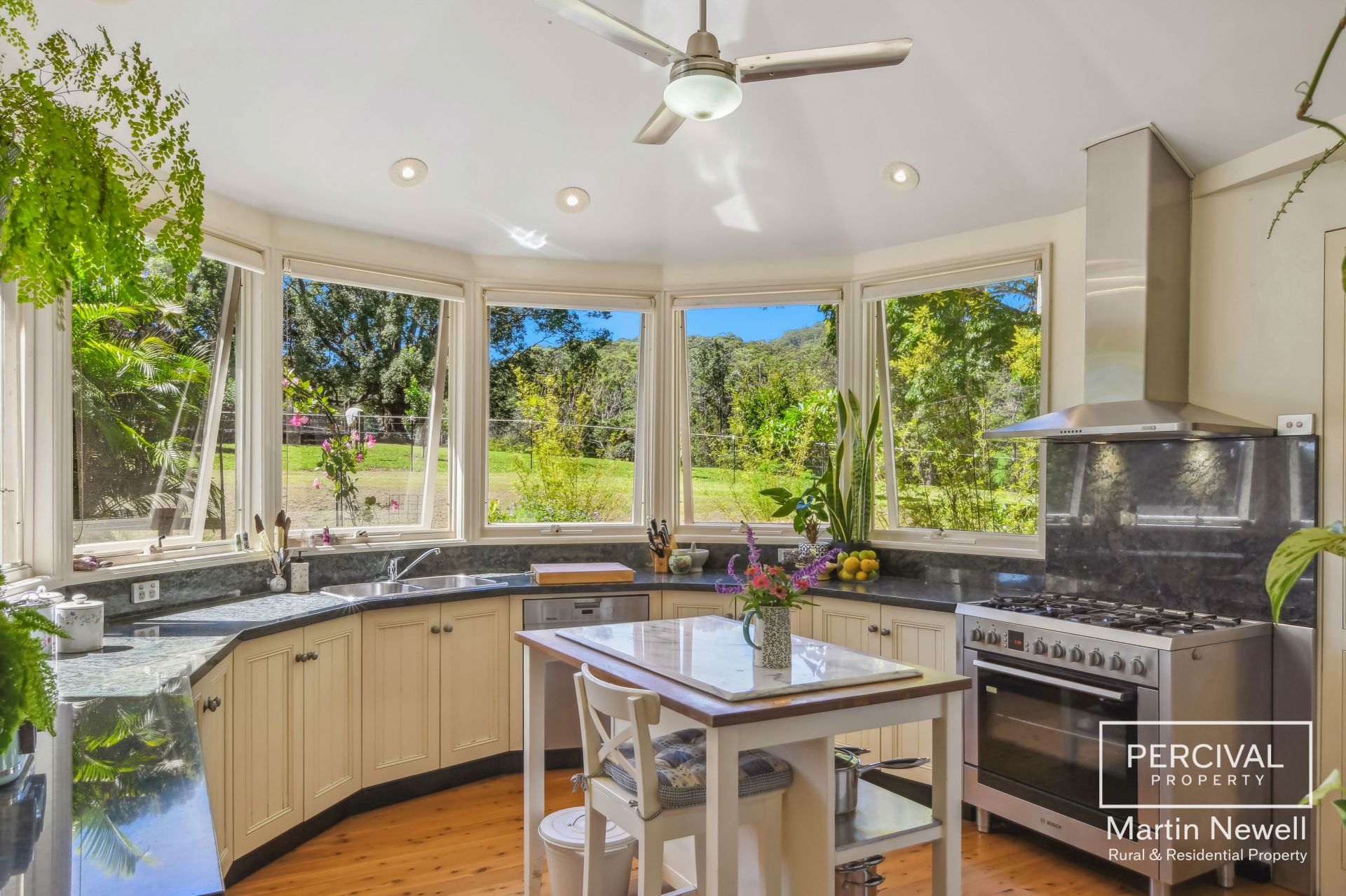 As you enter the property your greeted by a park-like landscape, featuring lush lawns and mature trees, including a majestic fig tree, over 30 fruit trees and a sub-tropical rainforest area.