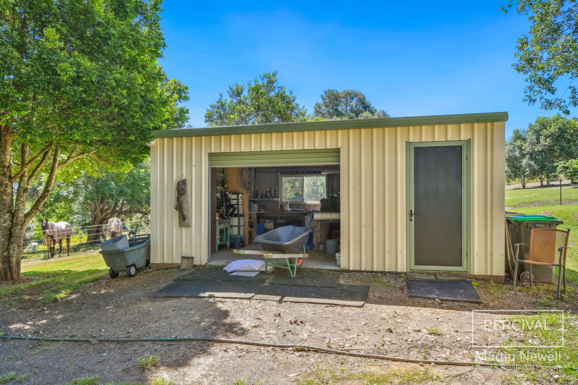 For equestrian enthusiasts, the property features horse-safe fencing, six paddocks, each with walk-through gates and hitching rails, double-sided shelter, and alleyways between paddocks, ensuring both functionality and safety for your equines. Additionally, there's excellent water security with a dam, and a 4ML irrigation license. The property also includes a separate dog yard and shelter.