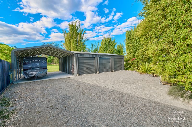 Garaging includes a double garage attached to the home, plus a shedding complex with three fully enclosed bays and two open bays at the rear of the property - perfect for the storage of a boat or van, or both.