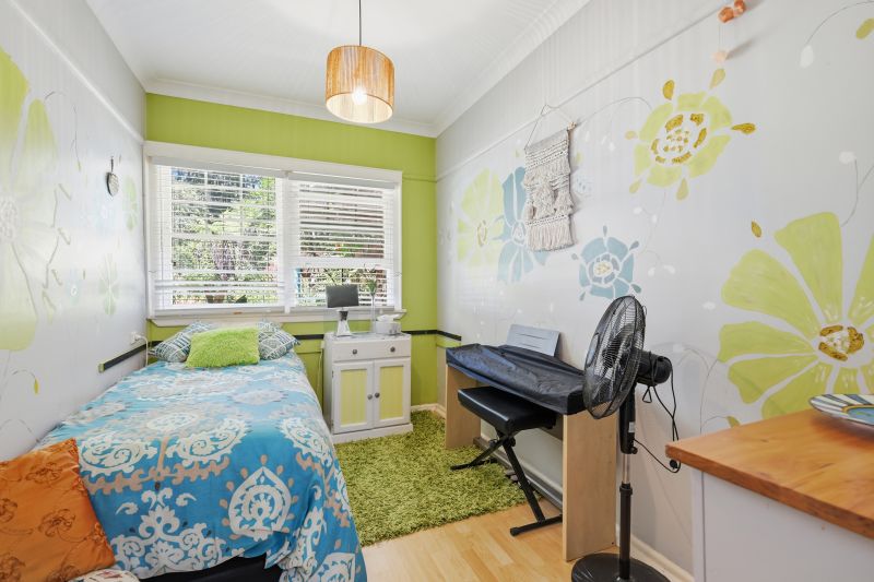 The kitchen forms the practical hub of the home, connecting easily with the meals area and adjacent living zones while retaining its own sense of separation. A centrally positioned bathroom services the residence, with a separate toilet adding flexibility for family living.
