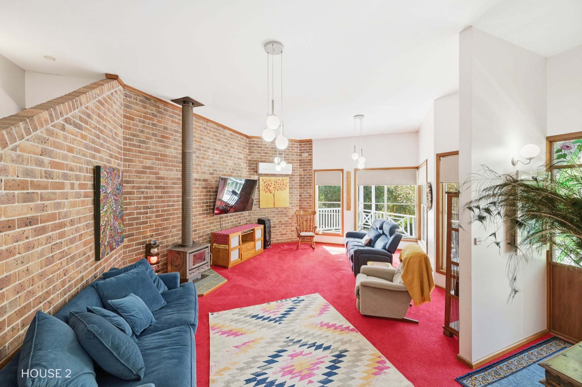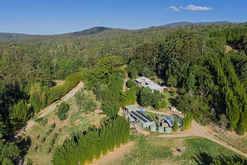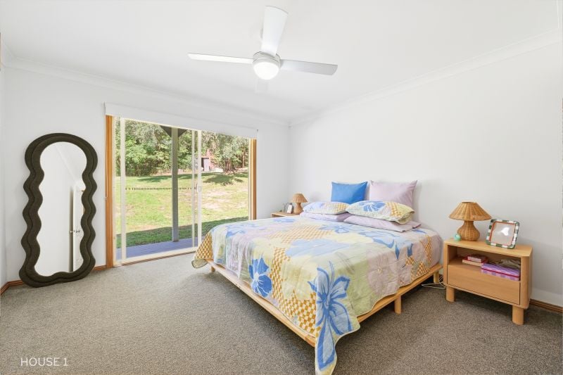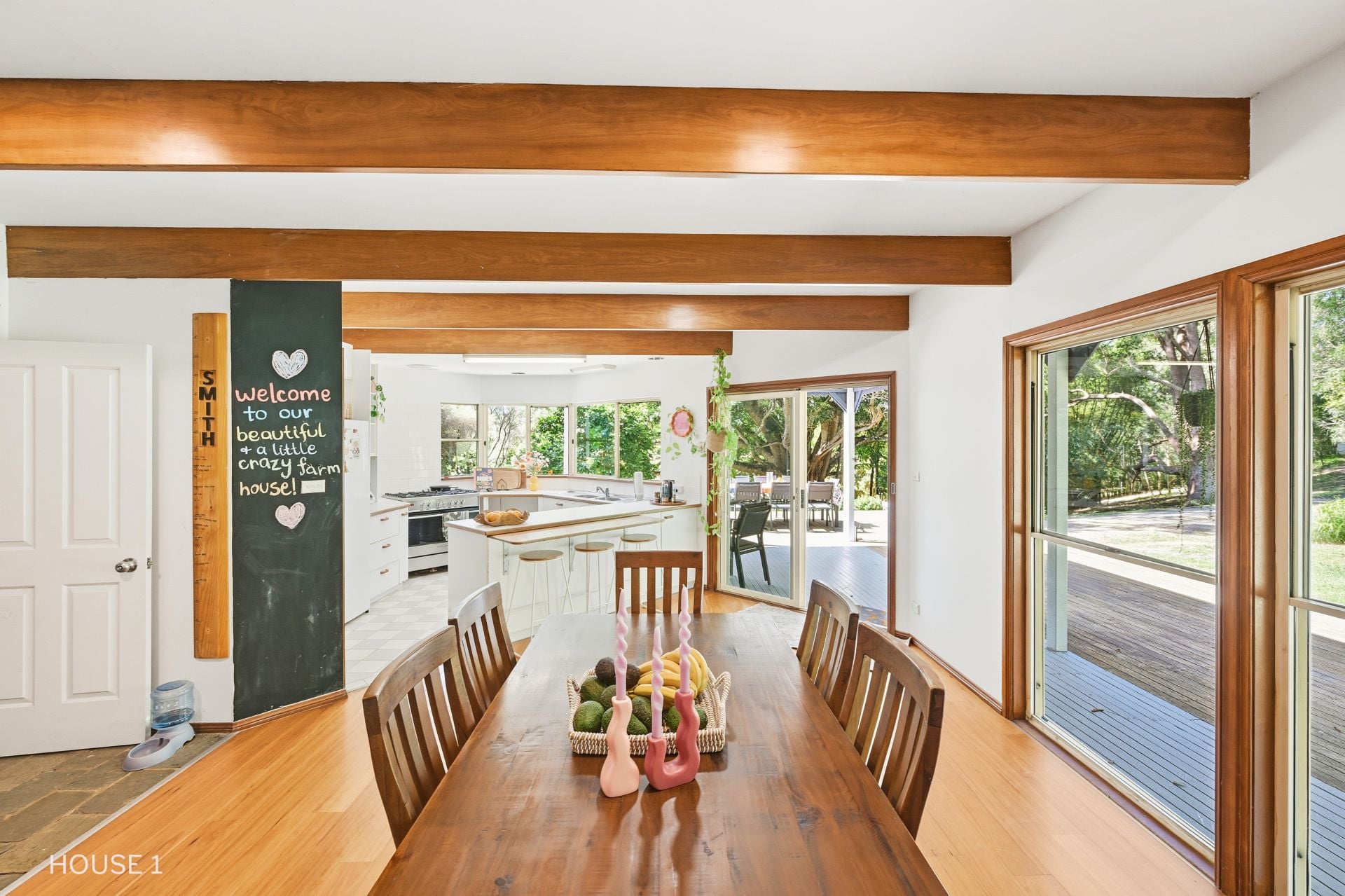 Two remarkable homes, created by a previous owner who was a renowned designer, rest among sweeping lawns, colourful gardens, and flourishing orchards-alive with native birdlife and occasionally visited by local wallabies.