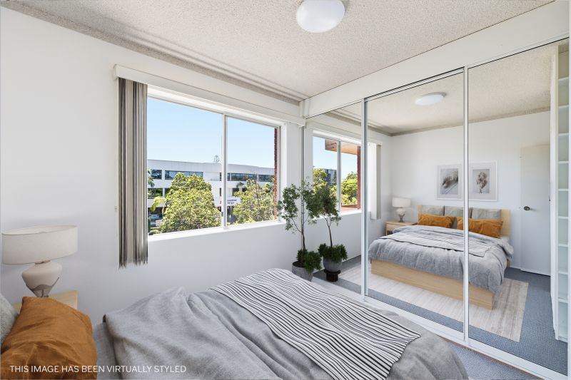 Two well-proportioned bedrooms each feature built-in robes and large windows; the main enjoys mirrored storage and an outlook toward the street, while the second offers flexibility for guests, a share arrangement or a home office. The bathroom is fresh and functional with separate shower and bathtub, good natural light and ventilation, and an adjacent separate toilet.