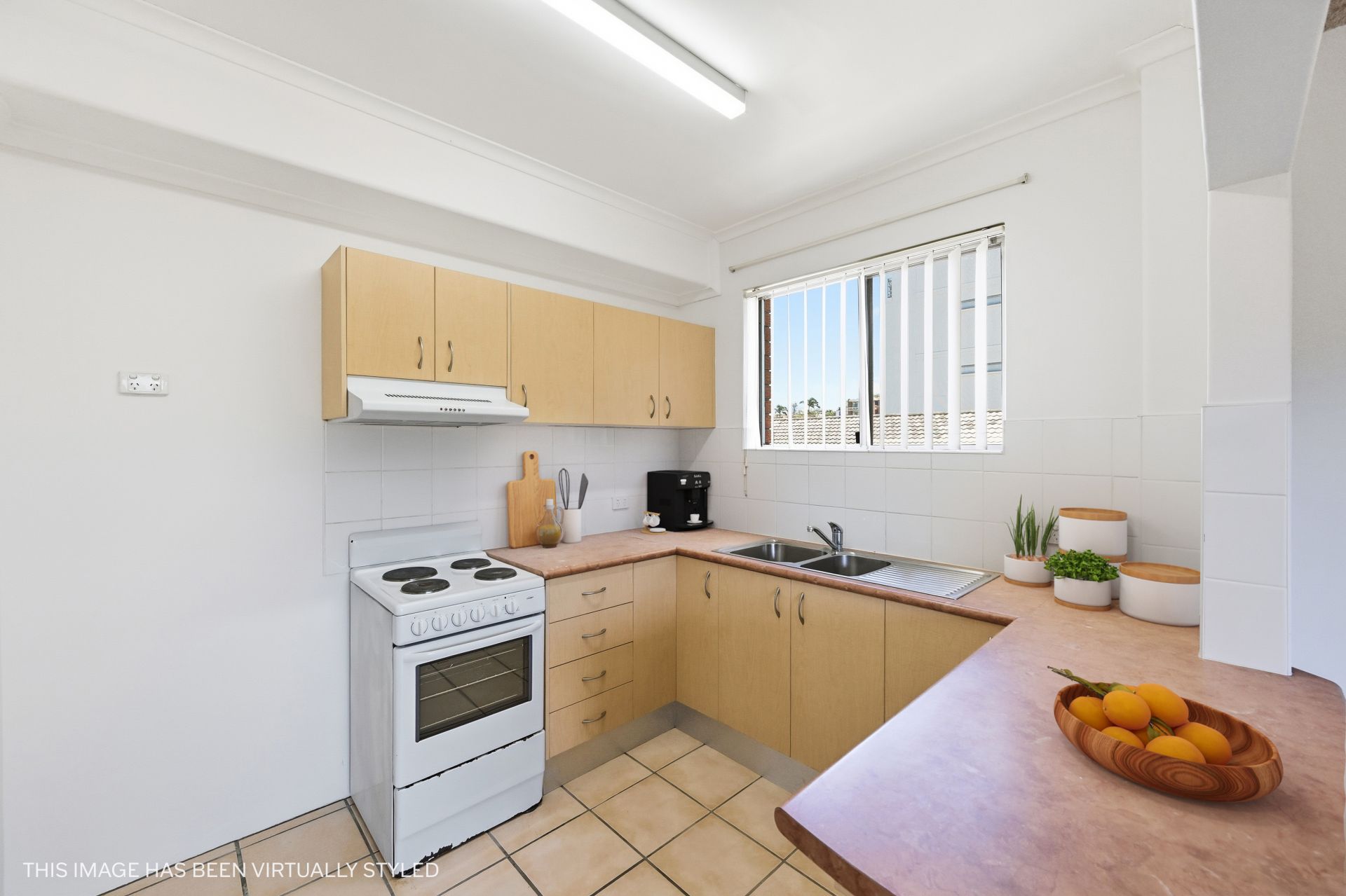 The adjoining kitchen is well equipped with an electric upright stove, rangehood, excellent bench space and abundant storage. A large window draws in natural light, while a separate internal laundry and linen cupboard off the entry add welcome practicality.