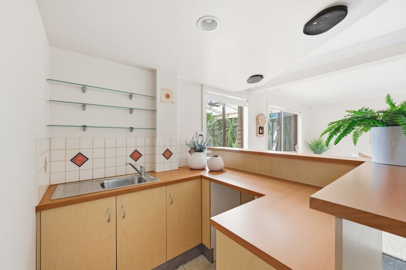 From here, the property reveals one of its greatest assets - the depth and usability of the 1,631sqm block. The north-facing backyard stretches out to a sparkling in-ground pool, framed by level lawn and established planting that creates a sense of privacy and space. There's room for backyard cricket, a trampoline, kitchen garden or simply to spread out and entertain in an easy, low-key way. A freestanding workshop with adjoining covered area adds further versatility as a studio, gym, games room or additional outdoor zone, while the 10.5m tandem garage provides room for vehicles, boards, bikes and beach gear.