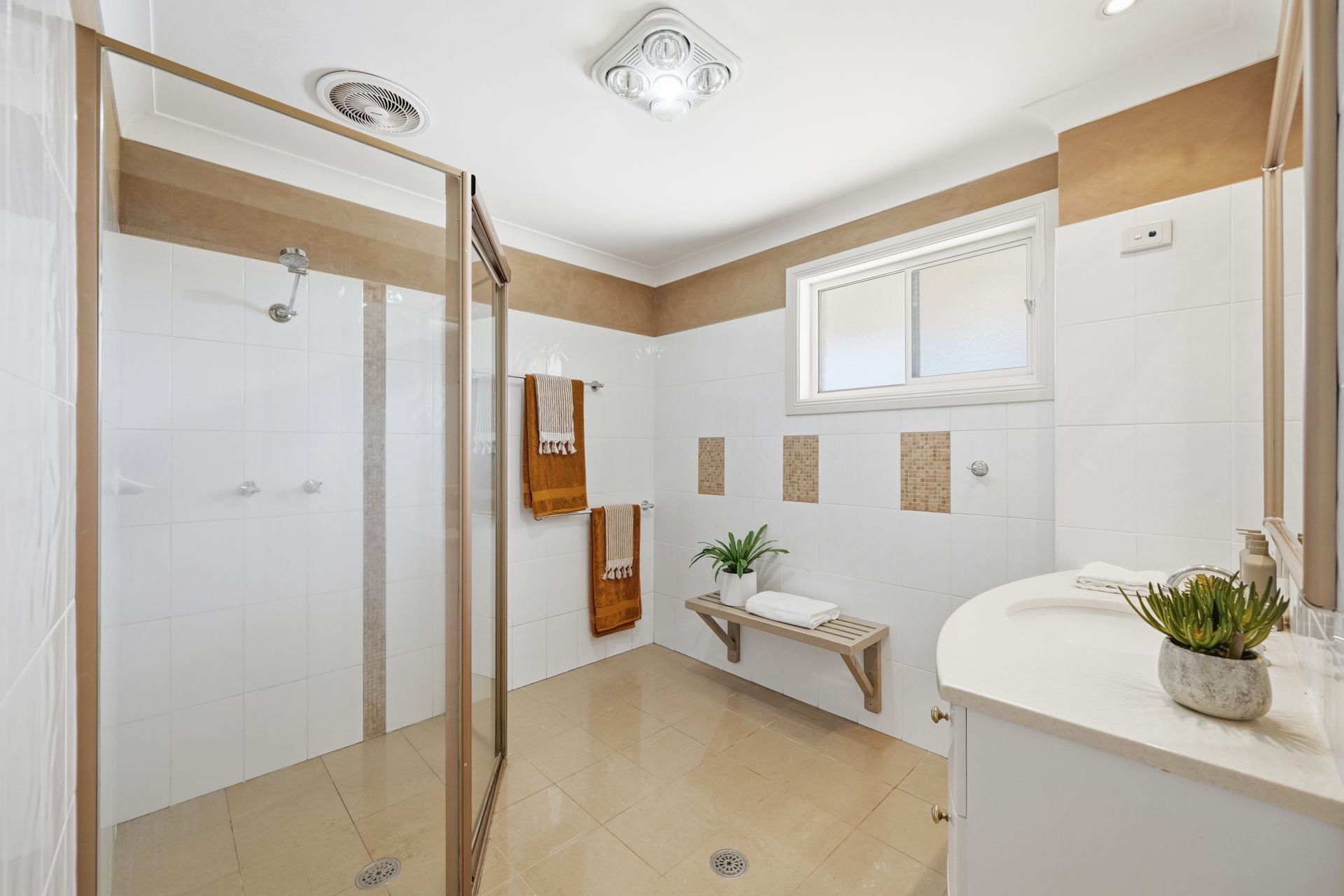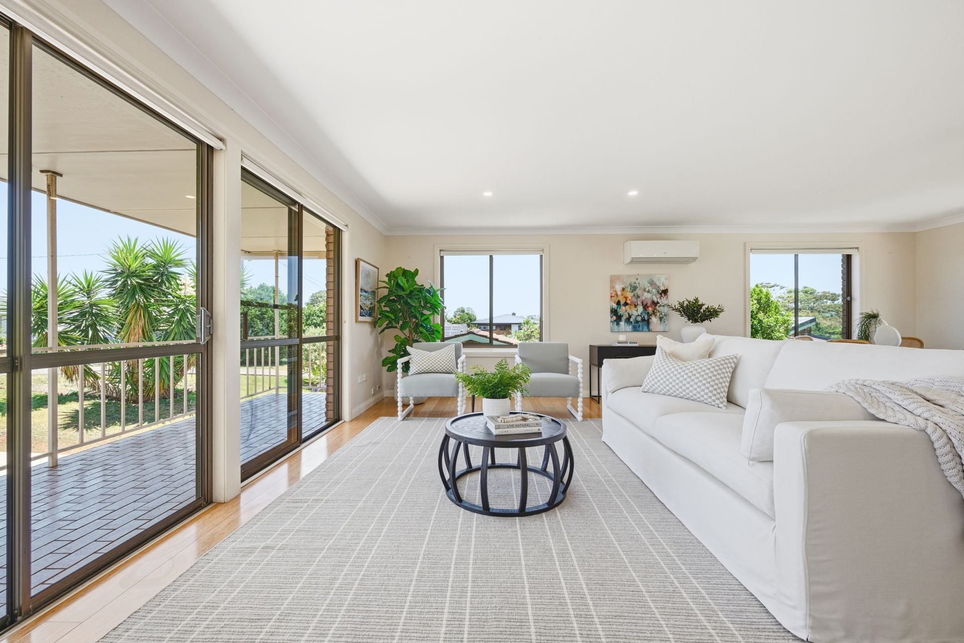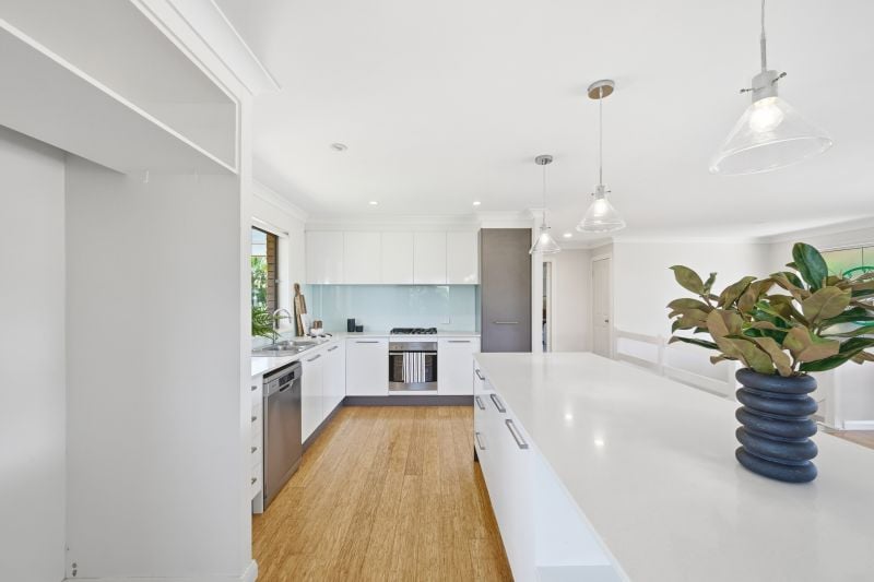To the rear, the dining area and kitchen take on a more elevated feel, drawing in leafy district views over the deep backyard. Sliding doors open from the dining zone to a covered rear patio, creating an effortless link between mealtimes and outdoor living.