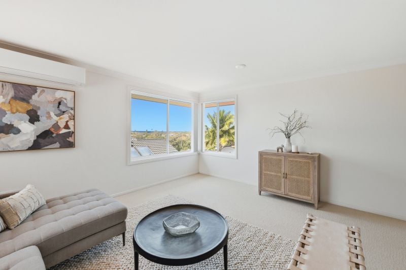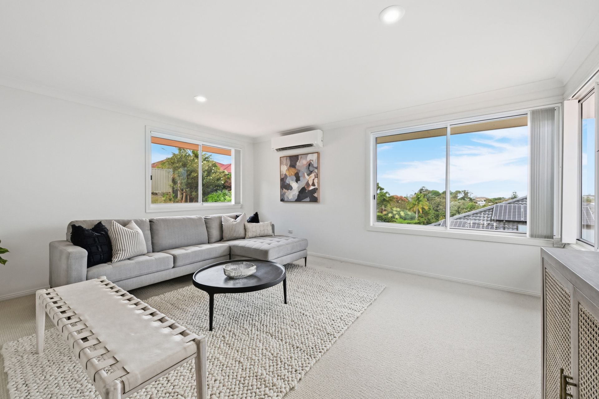 Multiple zones enhance family harmony, with a formal lounge offering separation for quiet retreat and an upstairs living room framing sweeping coastal and hinterland views.