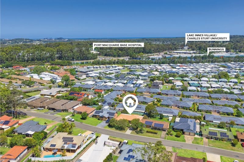 Positioned for convenience, the home is just a five minute drive from Lake Innes Shopping Village with its supermarket, cafes, pharmacy, bakery and butcher. Charles Sturt University, Port Macquarie Base Hospital and the surrounding medical specialist precinct are also only minutes away. The Hastings River waterfront sits just seven minutes from the door, while the CBD and Town Beach are a ten minute drive, placing essential amenity and coastal living within effortless reach.
