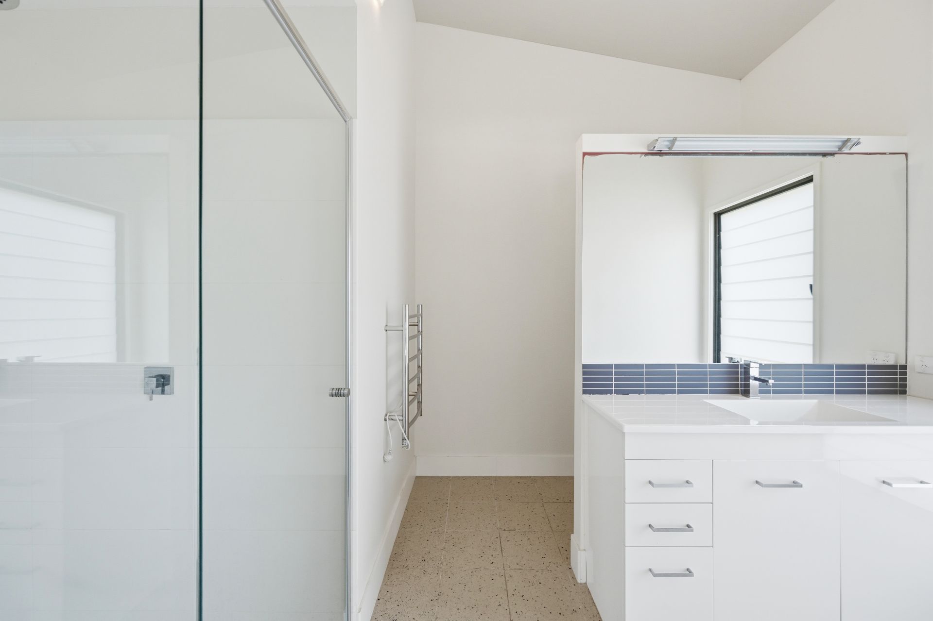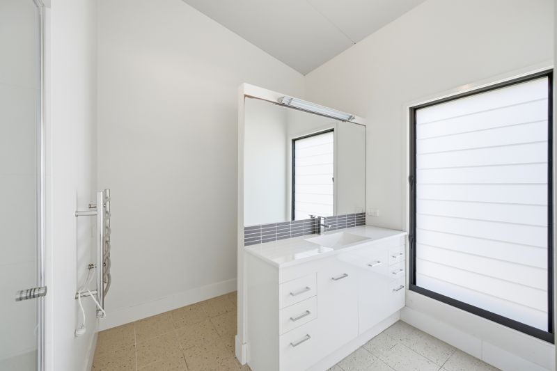 Three bedrooms are positioned to the rear, each peaceful in aspect. Two bedrooms have walk-in robes, the main also with ensuite and its own access to the rear deck. A contemporary bathroom with clean lines and a separate laundry with external access complete this level.
