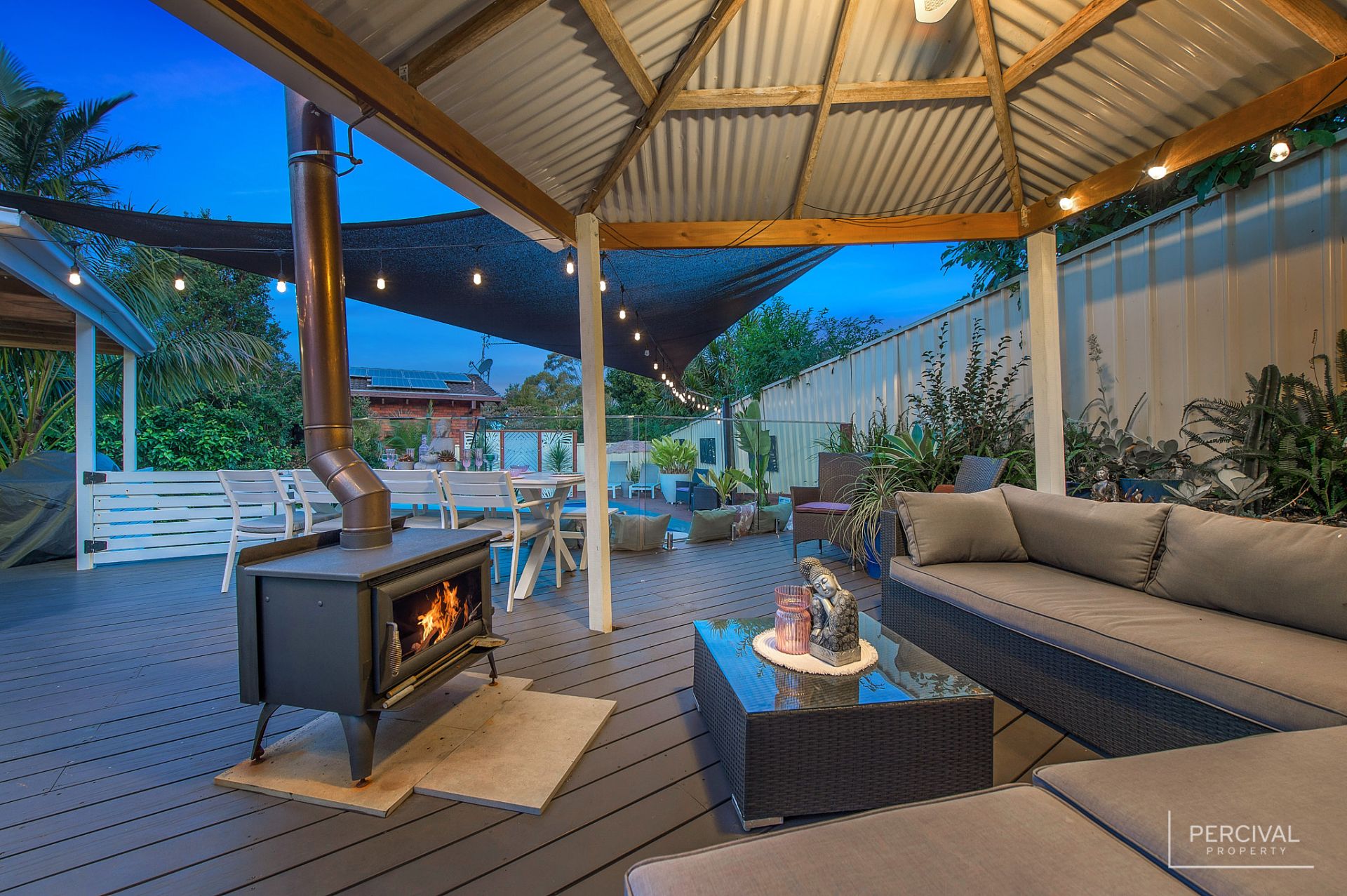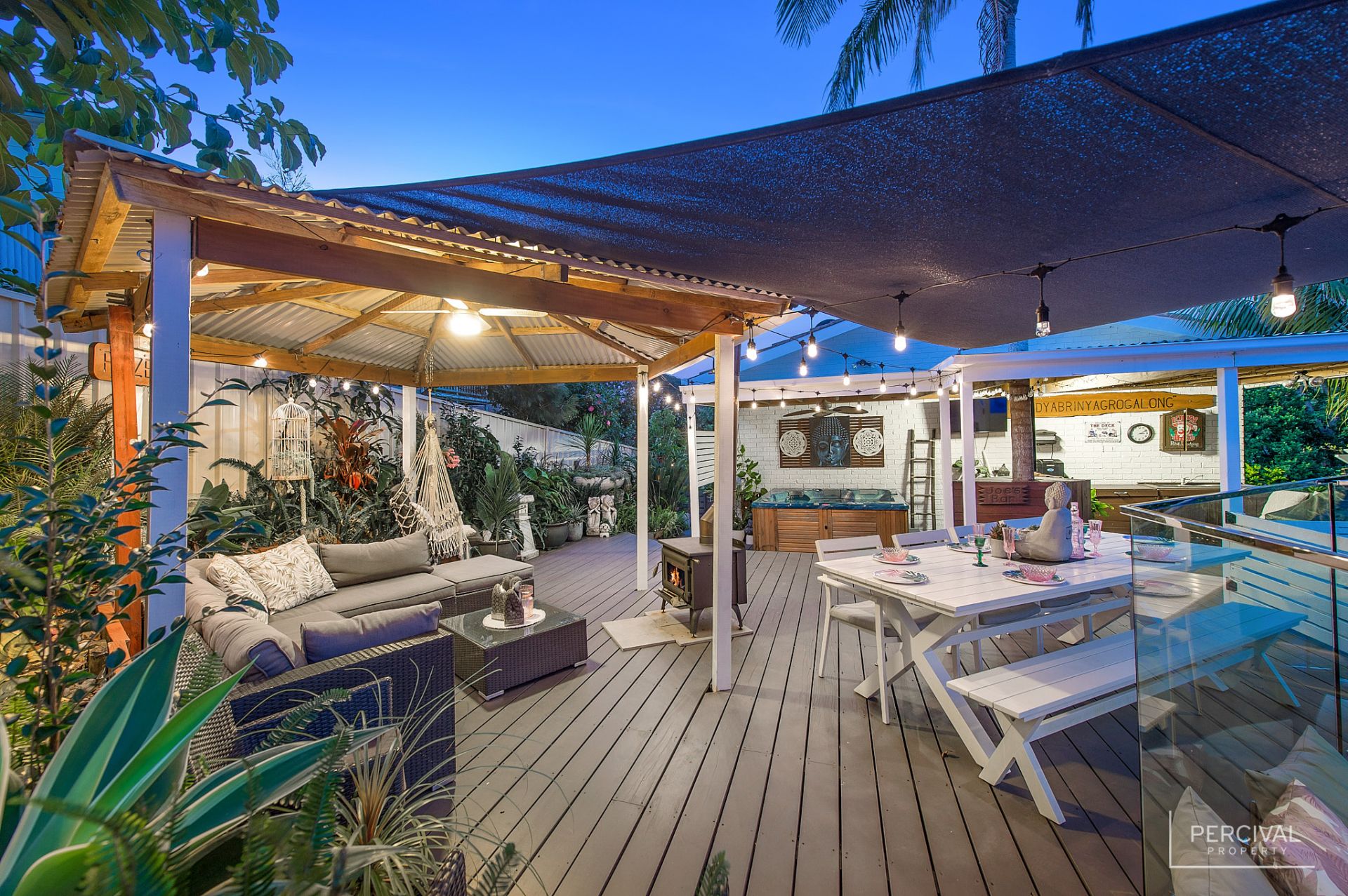 The backyard has been transformed into a place where you can unwind and have fun with friends and family. Your own private oasis features a magnesium inground swimming pool and huge timber deck entertaining area with a cozy wood fireplace, rustic style bar and BBQ area with sink and built-in seating. Lush lawn and established tropical gardens complete the picture.