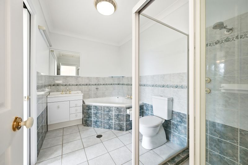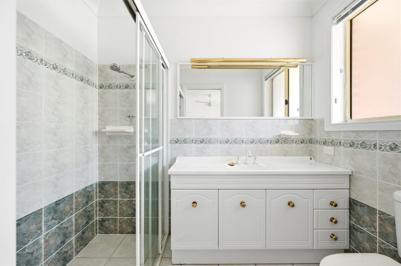 Accommodation is thoughtfully arranged across three bedrooms, each offering comfortable proportions and built-in storage. The main bedroom enjoys its own ensuite and generous space, while the remaining bedrooms are serviced by the central bathroom, complete with spa bath and separate shower.