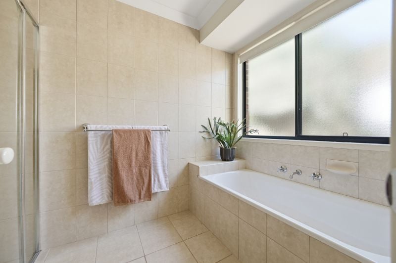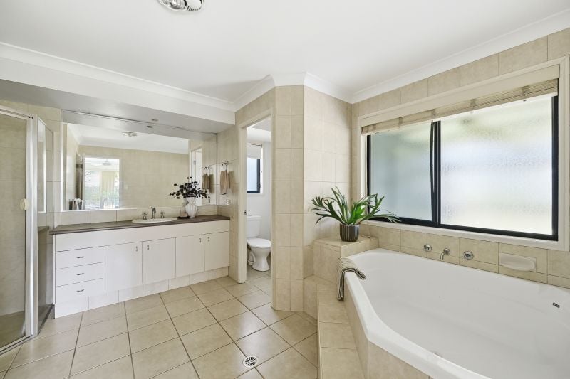 The main bedroom is beautifully proportioned and quietly positioned, with a garden outlook, walk-in robe, reverse cycle air conditioning and a generous ensuite complete with a separate shower, bath and toilet. The remaining bedrooms are fitted with built-in robes, while the study or fifth bedroom adds welcome flexibility for guests, work or growing households.