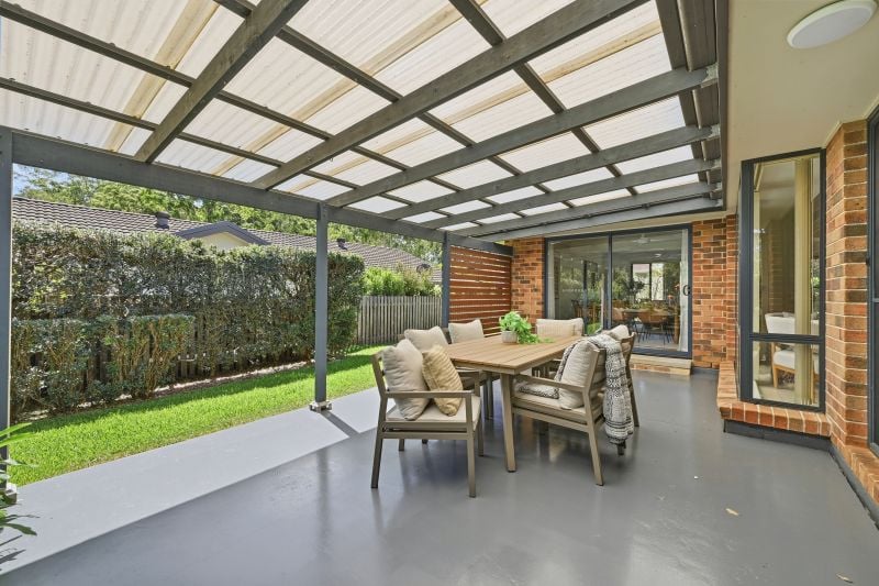 Outdoor living is one of the home's real strengths. The large covered alfresco extends naturally from the two living zones and offers a comfortable setting for long lunches, weekend entertaining or quiet mornings overlooking the garden. Framed by established hedging and gardens, the backyard feels private, open and wonderfully usable, with a green outlook that brings a lovely sense of calm. Side gate access and additional storage space at the rear further enhance the practicality.