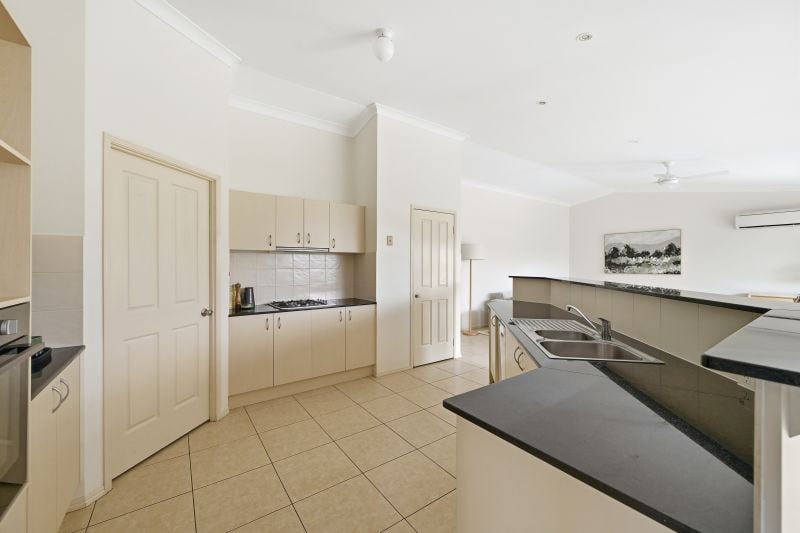 Centrally positioned, the kitchen is, designed to support the rhythm of daily living. Stone benchtops, gas cooking, a breakfast bar and a step-in pantry provide excellent workspace and storage, while the open plan arrangement keeps everything closely linked to the surrounding living zones.