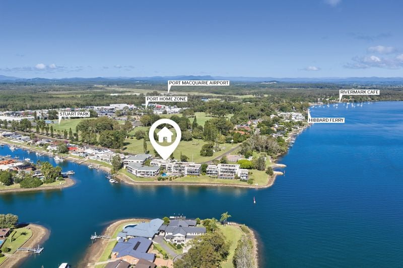 Residents of 'Riana Moorings' enjoy beautifully maintained grounds, a resort-style swimming pool, expansive riverfront lawns and direct access to the water's edge, with nearby mooring facilities and easy access to the Hastings River for boating, kayaking and fishing. The complex occupies a rare point position where canal, reserve and river meet, creating a setting that feels private while remaining only minutes from the marina, CBD, shopping centres, clubs and the waterfront precinct.