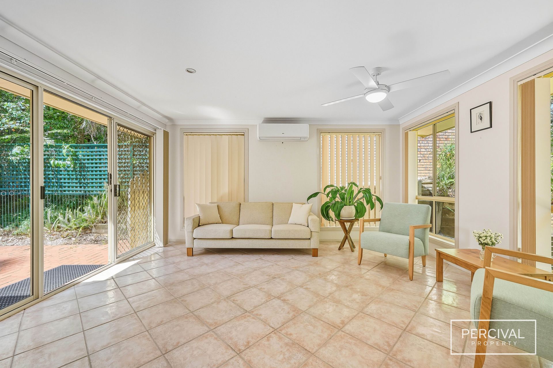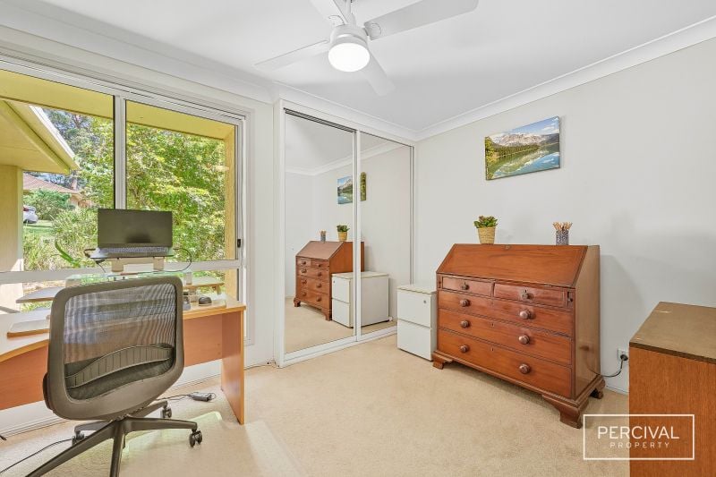 The master bedroom opens directly to the garden and includes a walk-in robe and ensuite, while all bedrooms feature ceiling fans. Reverse-cycle air conditioning keeps key areas comfortable year-round. A separate double garage with automatic entry provides secure parking and extra storage.