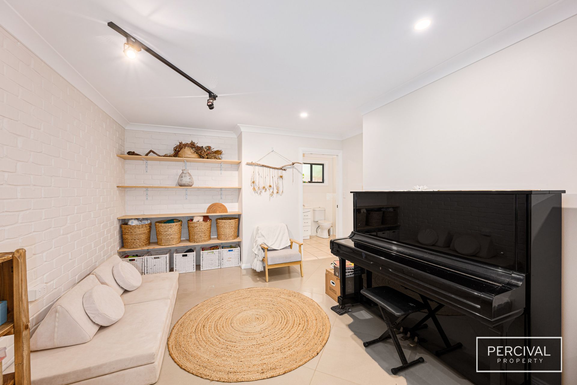 A private portico entry welcomes you into a wide foyer that flows into a versatile lower-level living space, ideal as a home office, guest suite, or multi-generational accommodation. A generous two-way bathroom serves as an ensuite to the bedroom with its own external access and is also accessible from the living room.