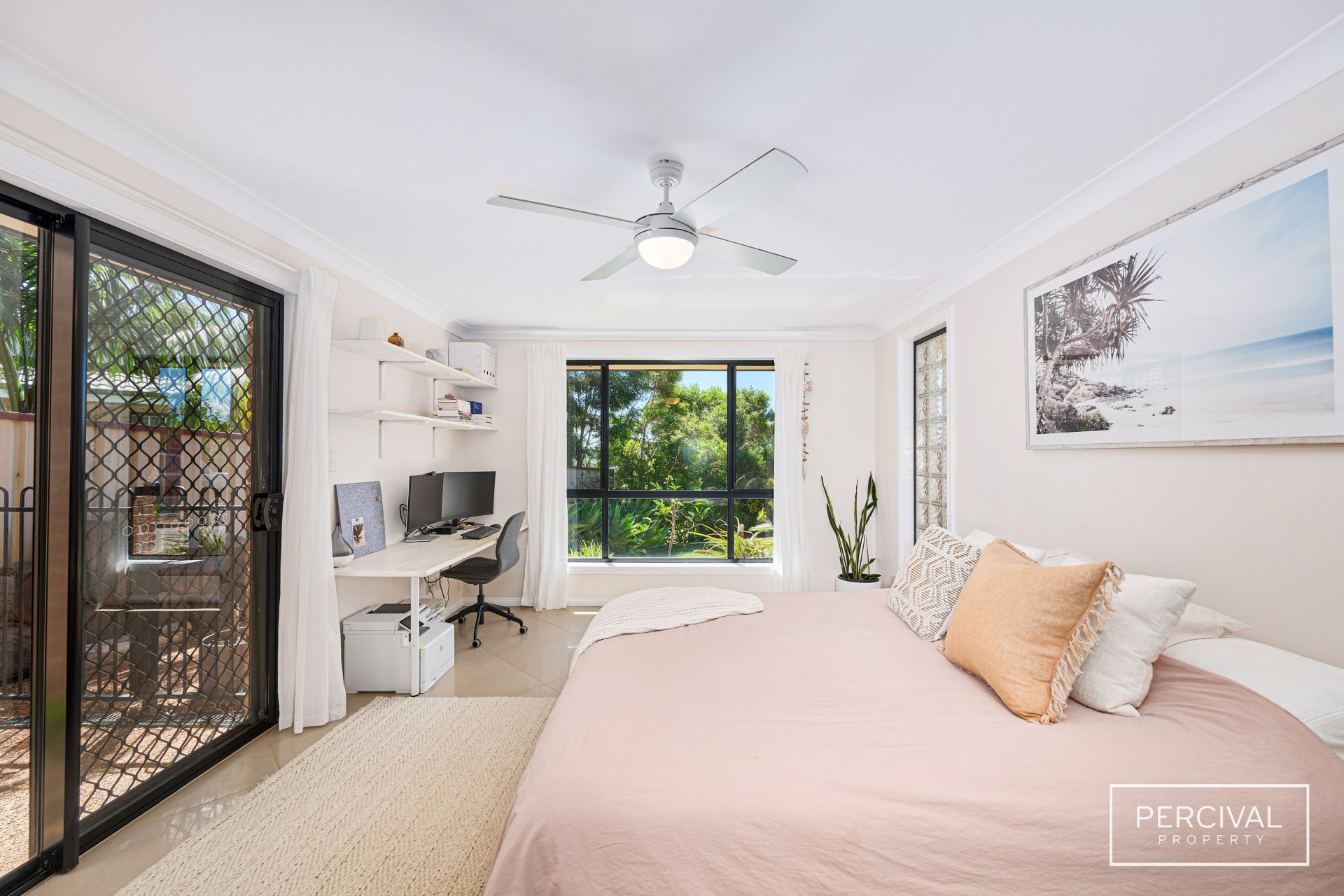 The accommodation wing is thoughtfully positioned for privacy and convenience. The generous parents' suite offers a walk-in robe, ensuite, and access to a peaceful patio overlooking the rear reserve with an ocean backdrop. Two additional bedrooms are well-appointed and located near the luxuriously sized main bathroom, complete with a bathtub and large shower, making this home ideal for families or visiting guests.