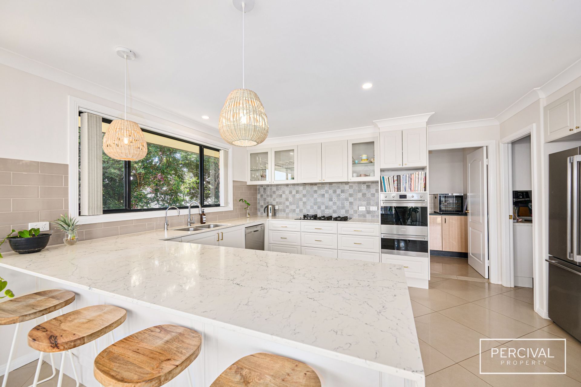 At the heart of the home, the spacious kitchen is a delight, boasting quality appliances, including a gas cooktop, granite-topped breakfast island, and a walk-in pantry. With its timeless design and functionality, it's a space that caters beautifully to modern family life.