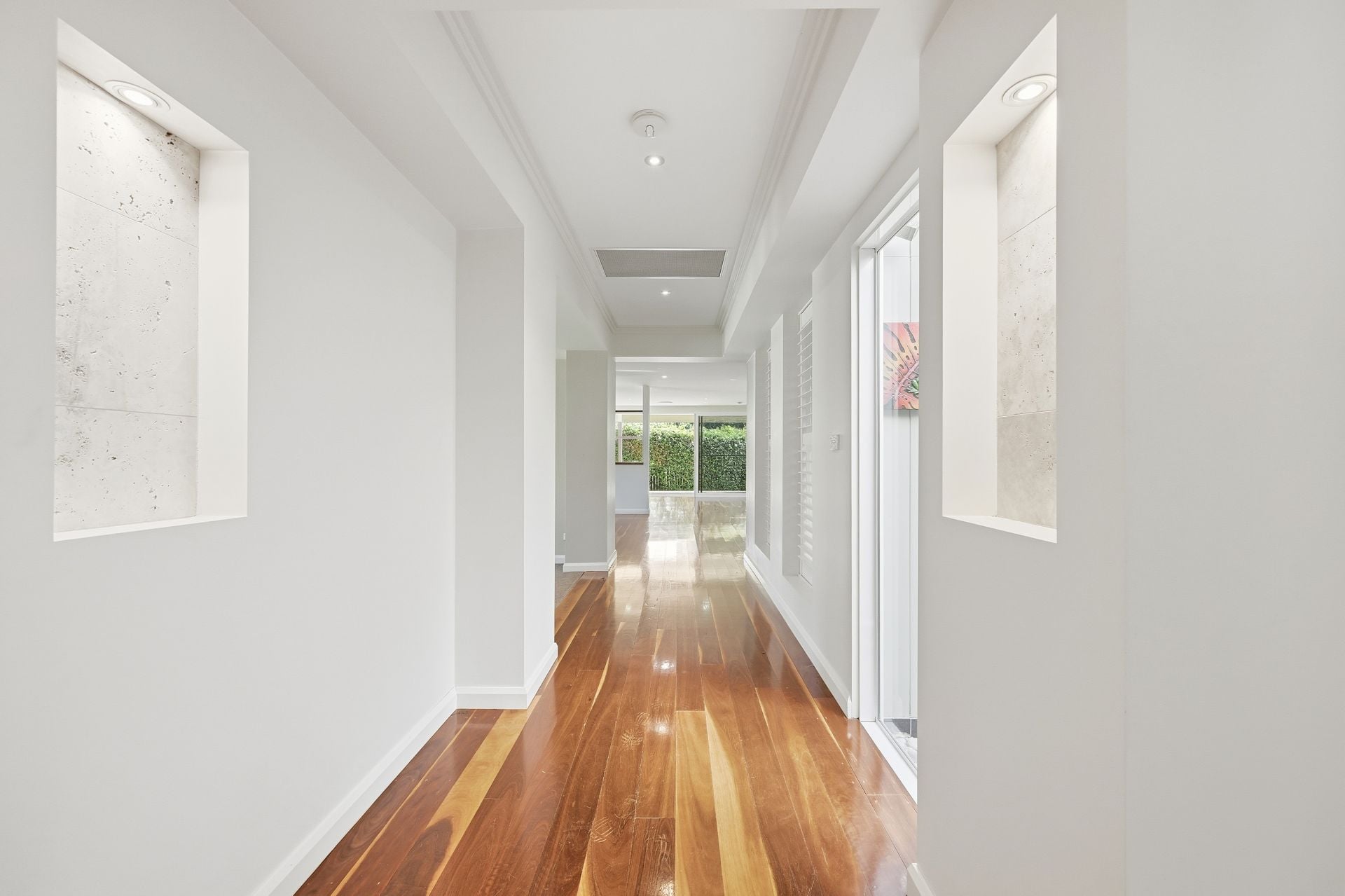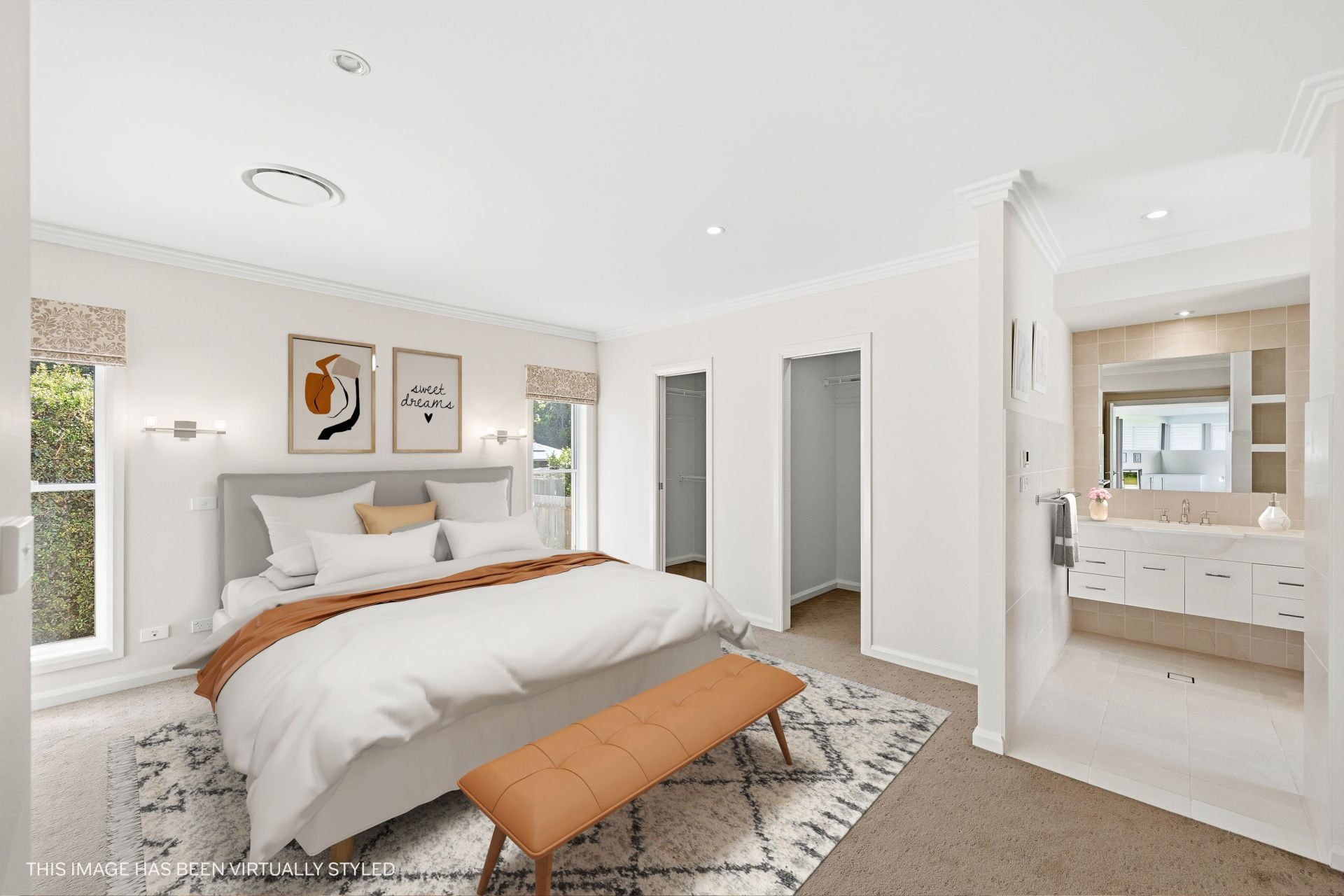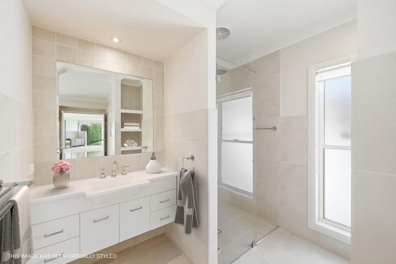 Accommodation reflects the same attention to comfort and finish. The main suite offers generous scale, private garden access and dual walk-in robes, complemented by a luxurious ensuite with heated flooring and refined detailing.