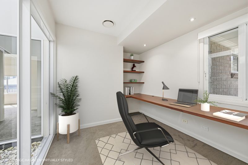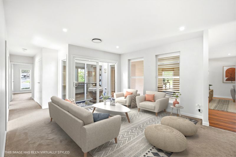 Multiple living zones create natural separation between relaxation, entertaining and retreat. A formal lounge introduces calm symmetry, while expansive open plan family and living areas extend toward the covered alfresco, allowing indoor and outdoor living to remain visually and functionally connected. A dedicated study with custom joinery and a tranquil internal atrium adds both practicality and architectural interest, forming a quiet focal point within the home's layout.
