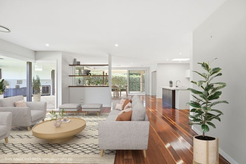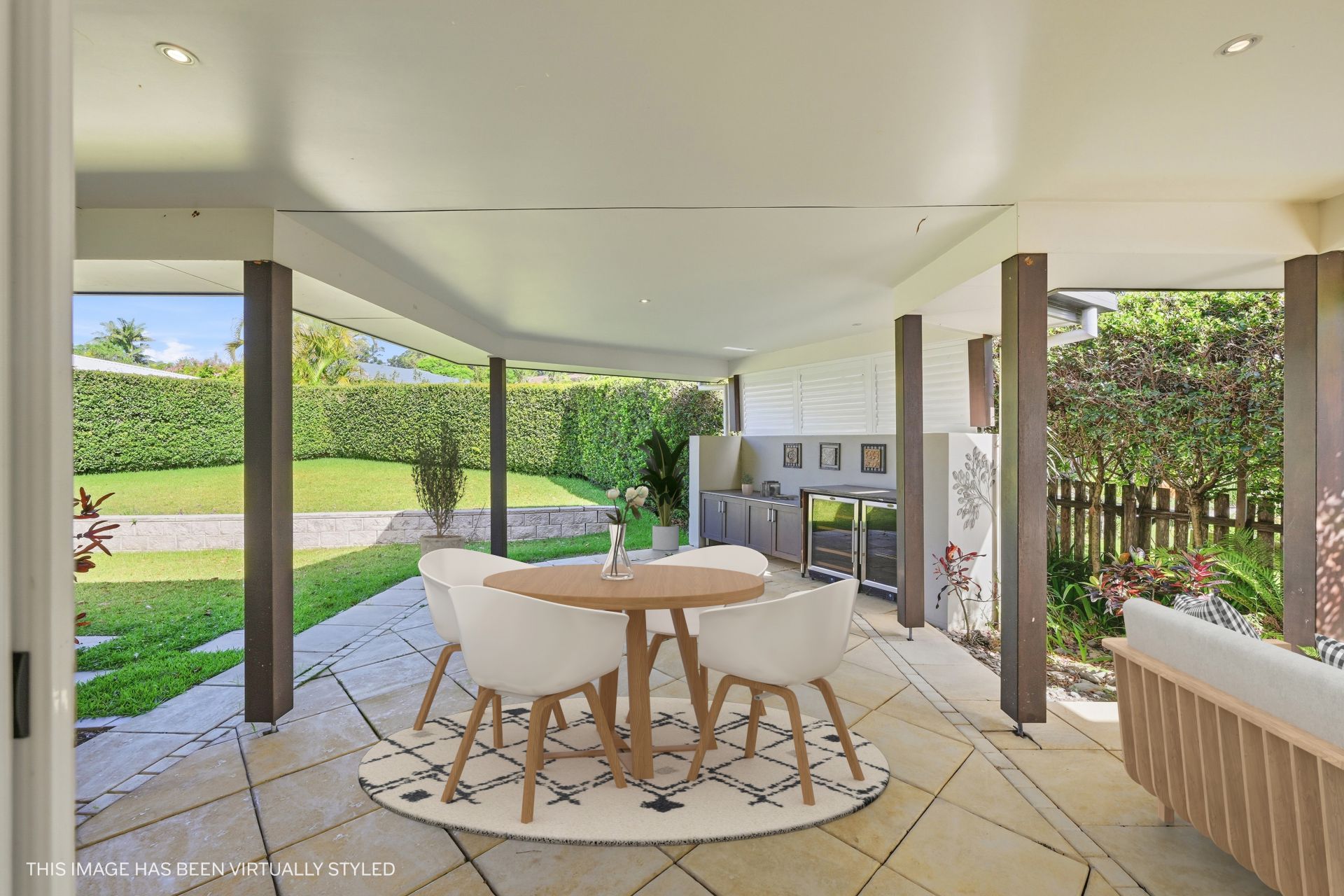 Outdoor entertaining is equally considered, with a covered alfresco featuring outdoor kitchen cabinetry - an environment designed for relaxed gatherings, long afternoons and effortless hosting within landscaped, low-maintenance surrounds.