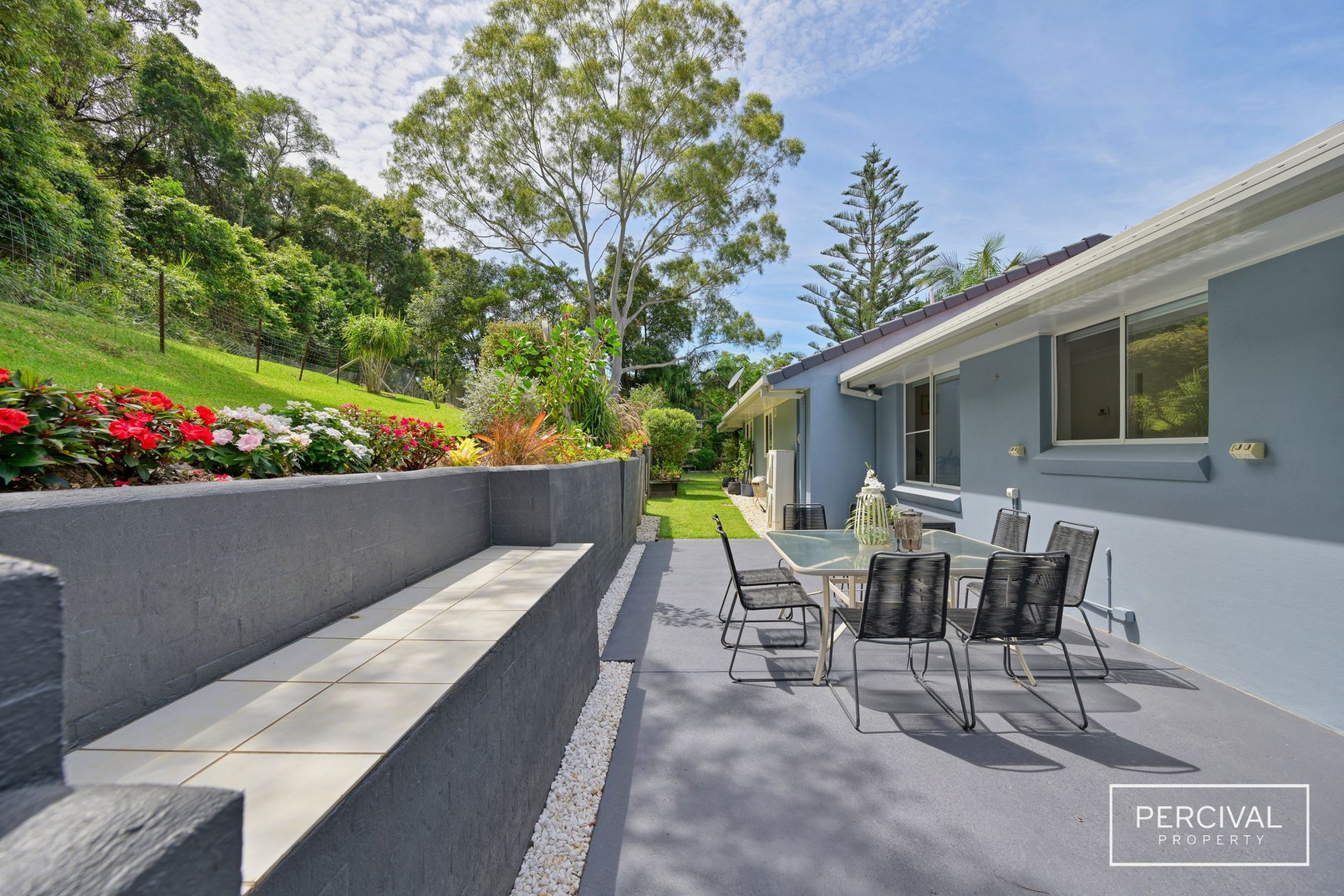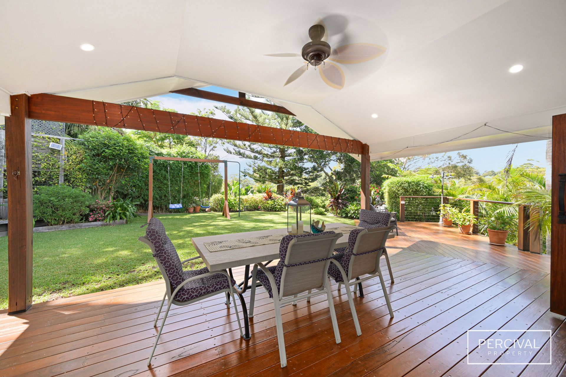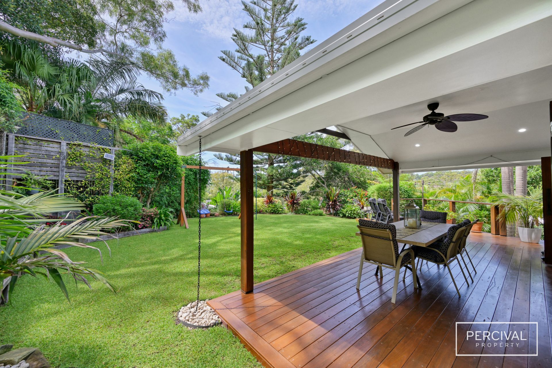 Multiple living and entertaining areas provide flexibility for families and guests. The main living zone extends seamlessly to a covered deck, where alfresco dining is effortless and overlooks a lawned terrace. An adjoining sun-drenched deck is perfect for barbecuing, while a second outdoor space offers a private retreat among established tropical gardens that merge with the reserve beyond.