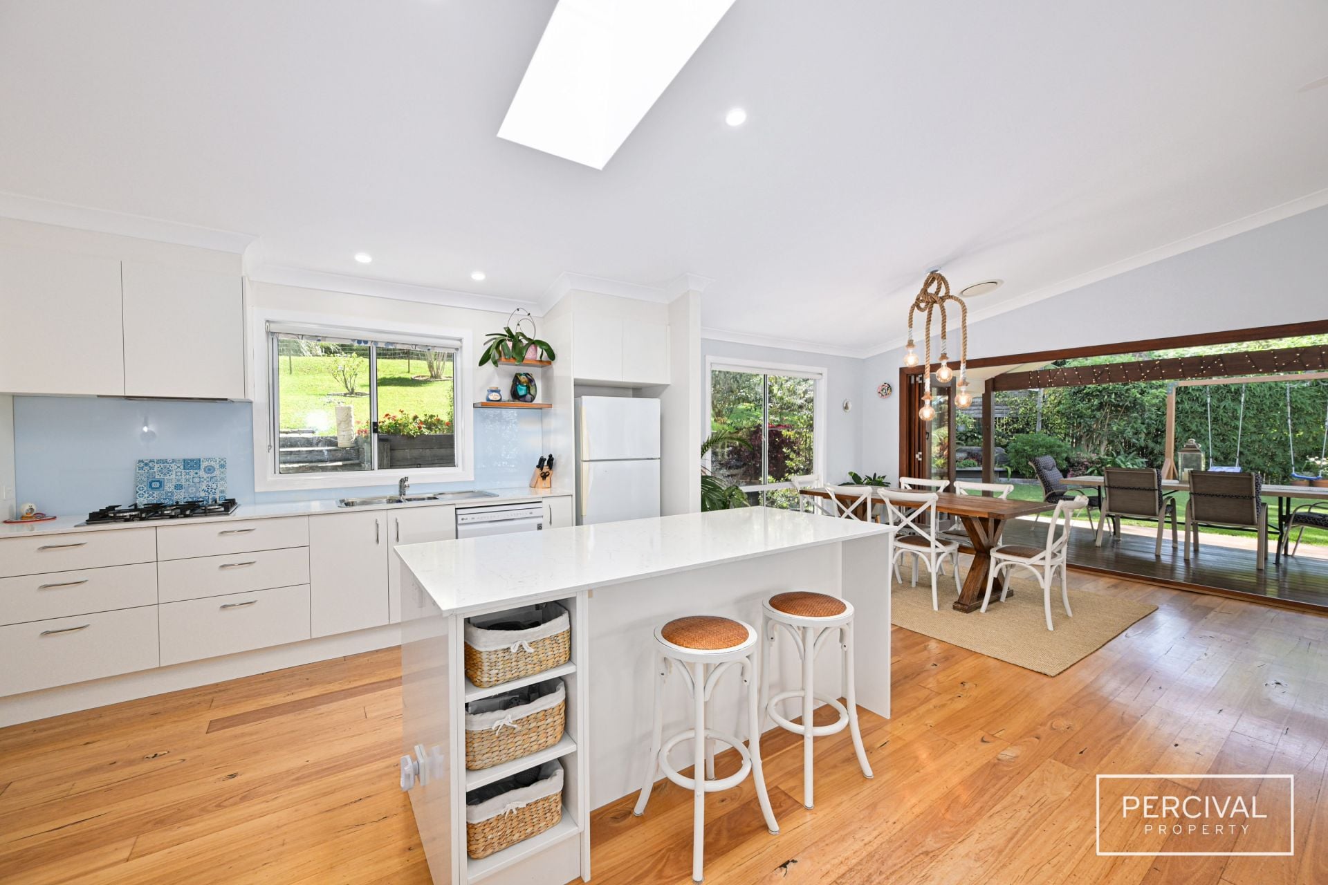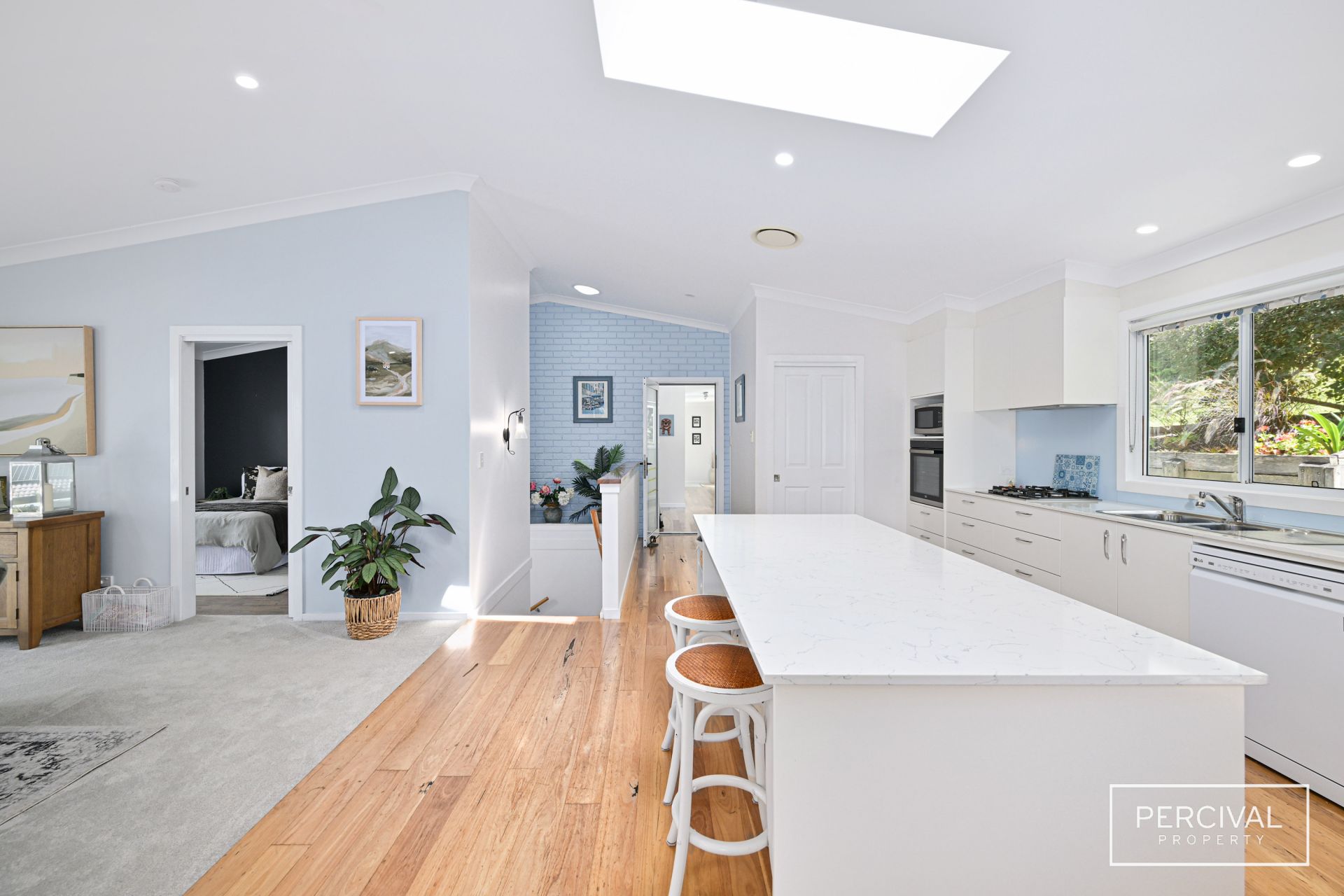 A thoughtful design maximises light and space, with soaring raked ceilings, polished timber floors, and a flowing open-plan layout. At the heart of the home, a contemporary kitchen is appointed with a walk-in pantry, gas cooktop, island bench, and dishwasher - perfect for those who love to cook and entertain. Expanses of glass frame lush garden and treetop outlooks, drawing the beauty of nature inside and creating a wonderful sense of connection to the outdoors.