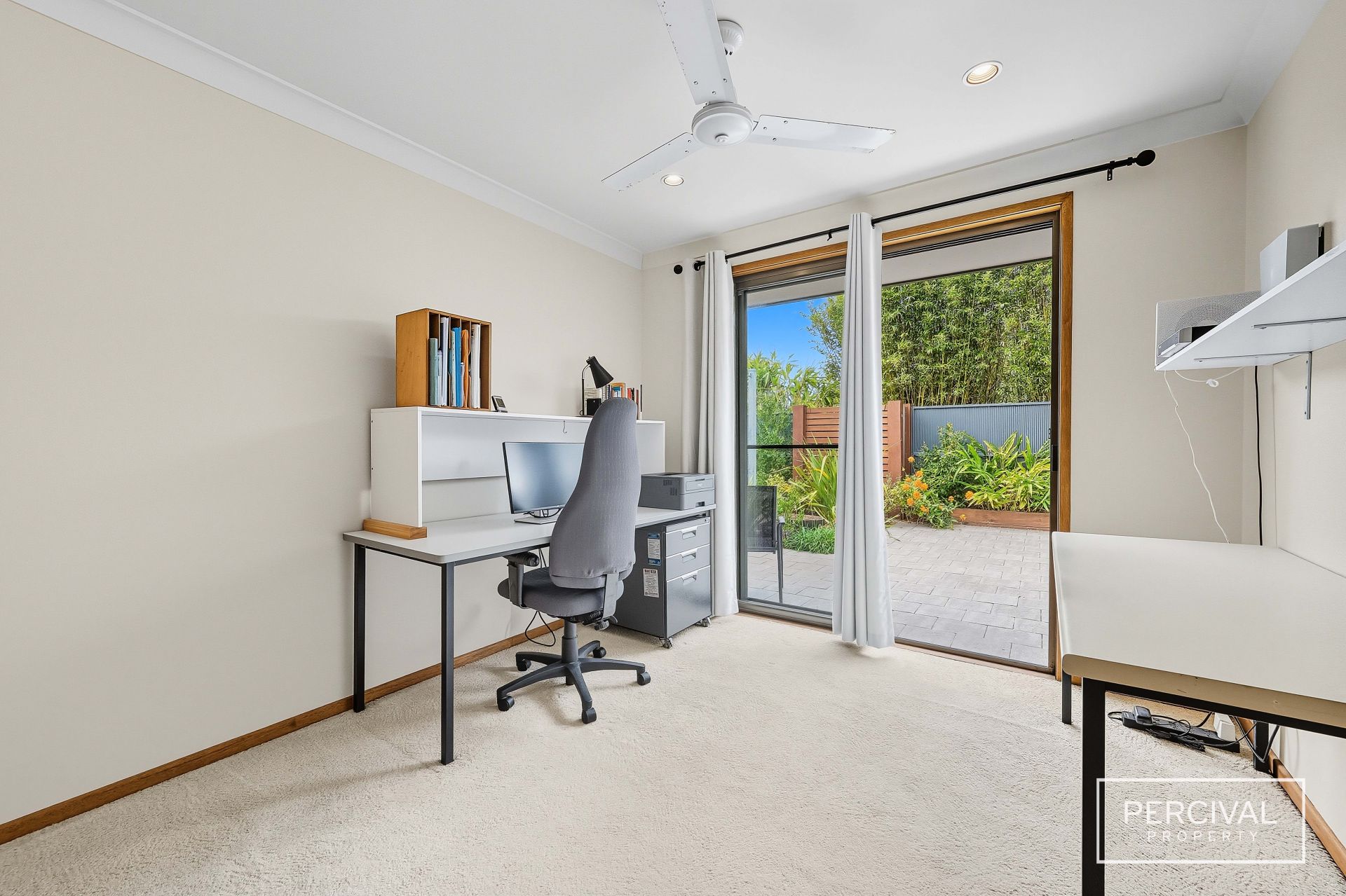 A second courtyard, enclosed and bathed in northern light, connects directly with the main bedroom and one other creating a peaceful retreat that extends the living experience outdoors. The main suite includes air conditioning, built-in robe and ensuite, while two additional bedrooms feature built-ins and ceiling fans.