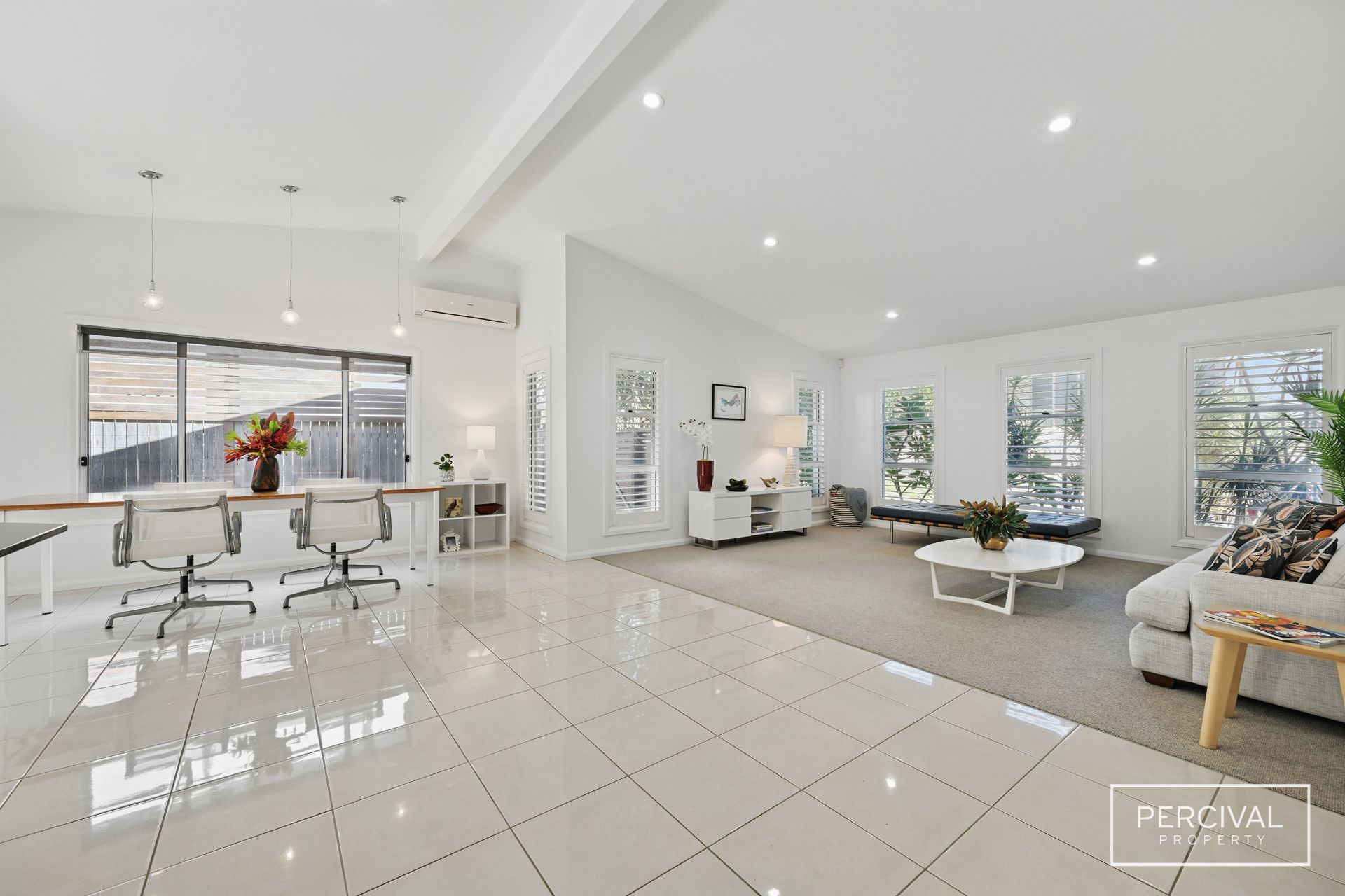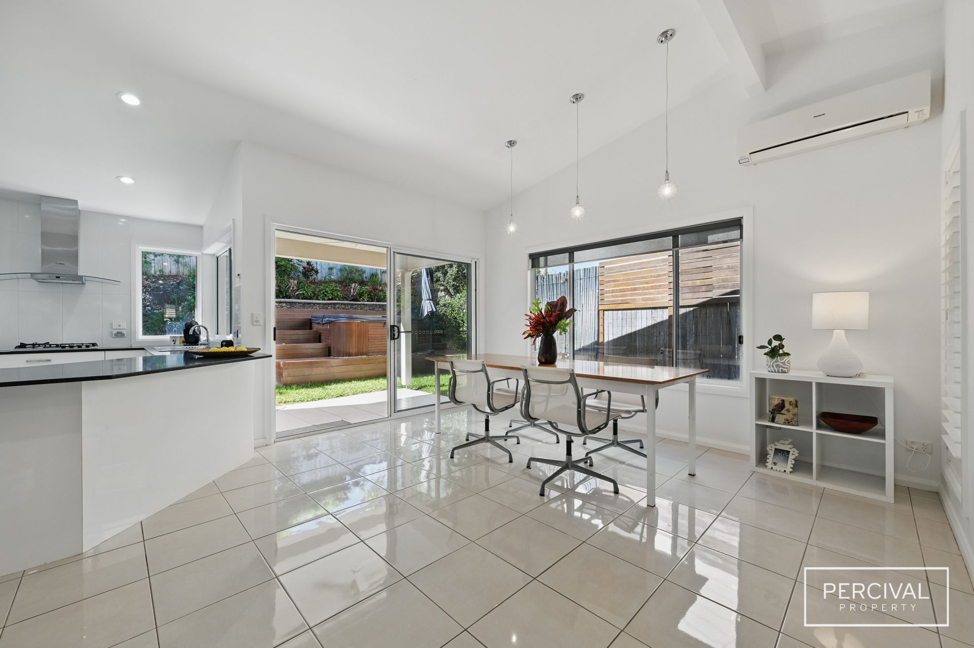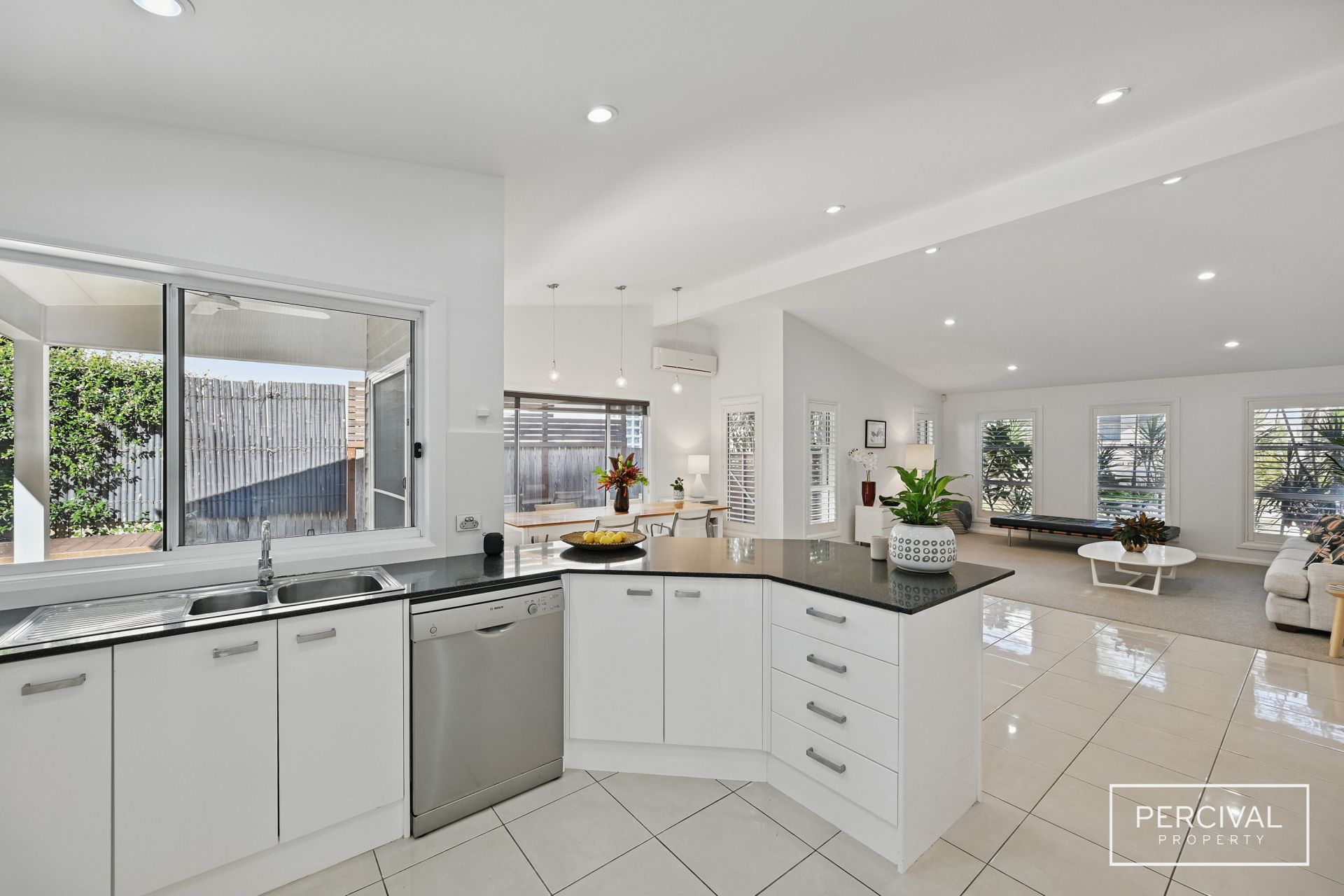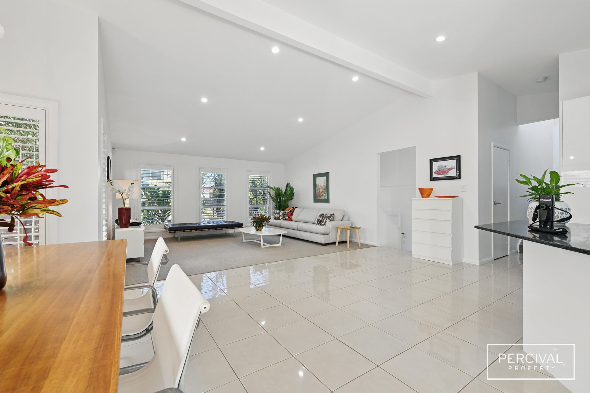 Quality finishes and thoughtful design define this split-level home, where light-filled interiors and a seamless layout enhance both style and functionality. High raked ceilings in the living zone further elevate the sense of space and openness, creating an inviting atmosphere filled with natural light.