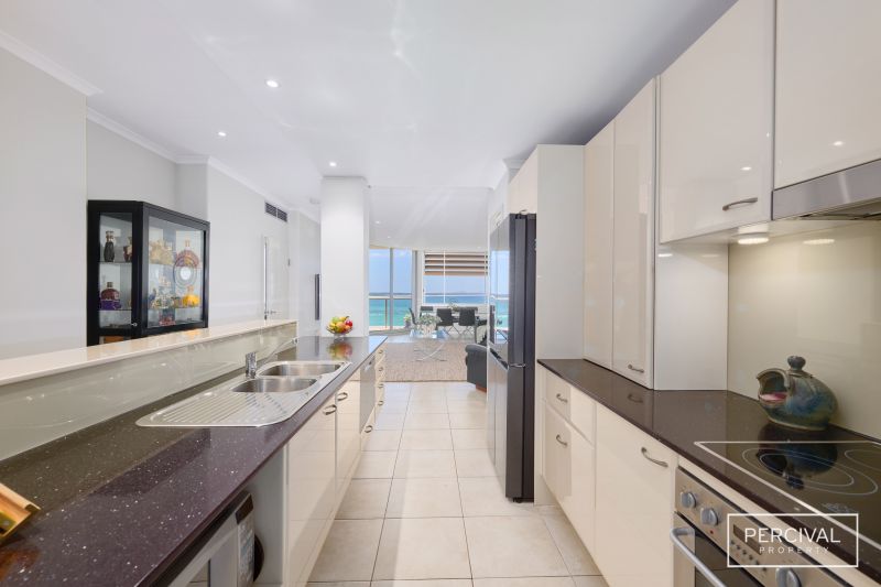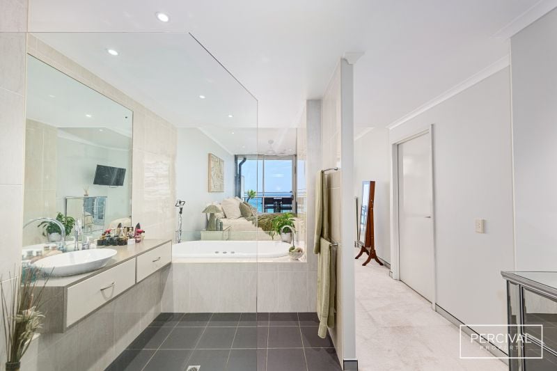 Combining house-like proportions with refined design, this private haven exudes luxury and effortless sophistication. A private lift opens directly to your exclusive lobby, while floor-to-ceiling glass showcases magnificent coastal vistas, bathing the living, dining, kitchen, and master suite in natural light and creating a seamless connection to the outdoors.