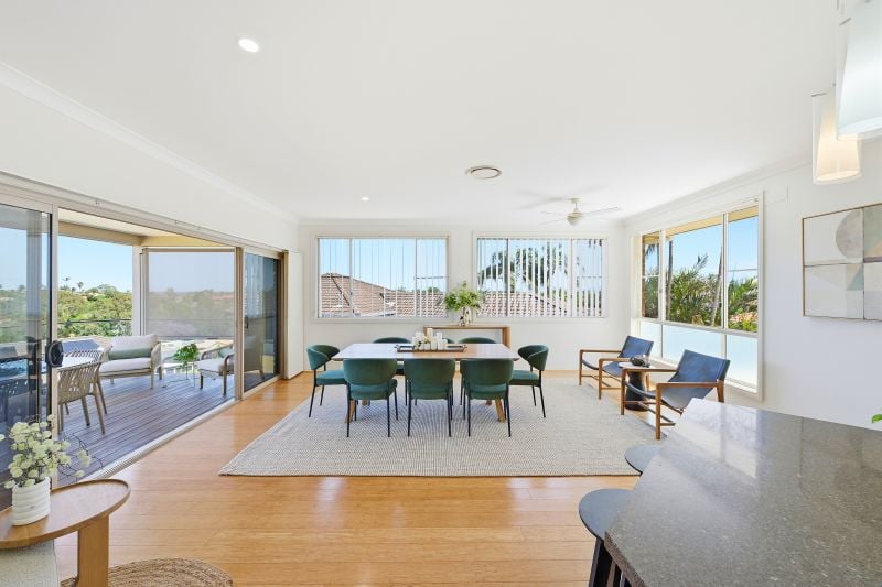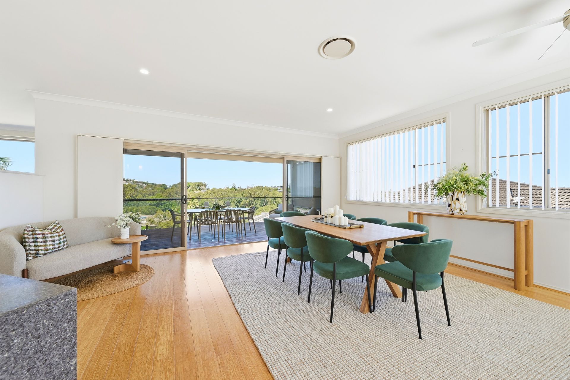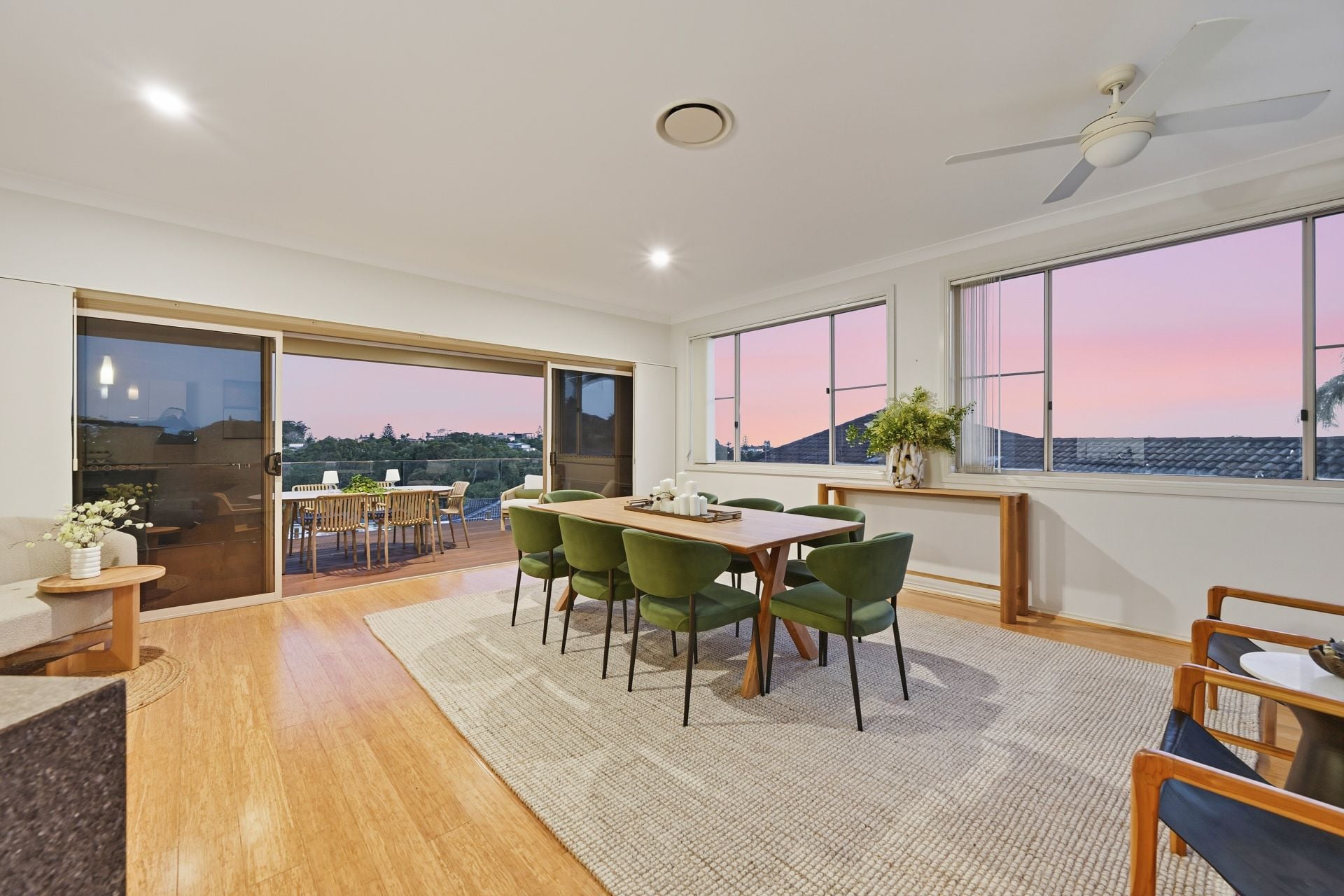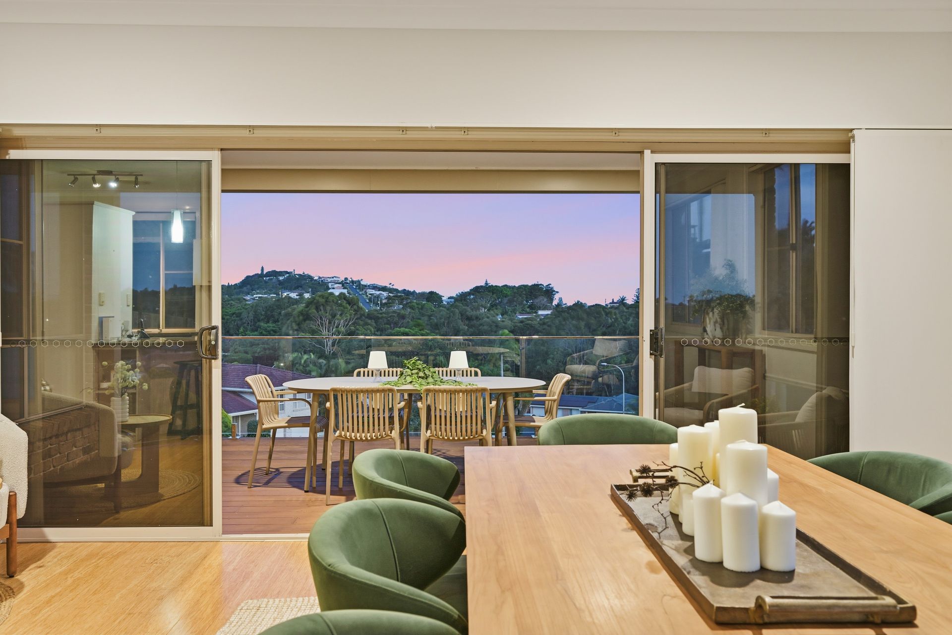 The upper level forms the heart of daily life. Open plan living and dining zones enjoy a soothing backdrop of greenery and distant ocean glimpses, creating a sense of space and light that shifts throughout the day. Wide glass doors extend this level to a deep covered deck with glass balustrades - a superb vantage point for entertaining, outdoor dining or simply unwinding.