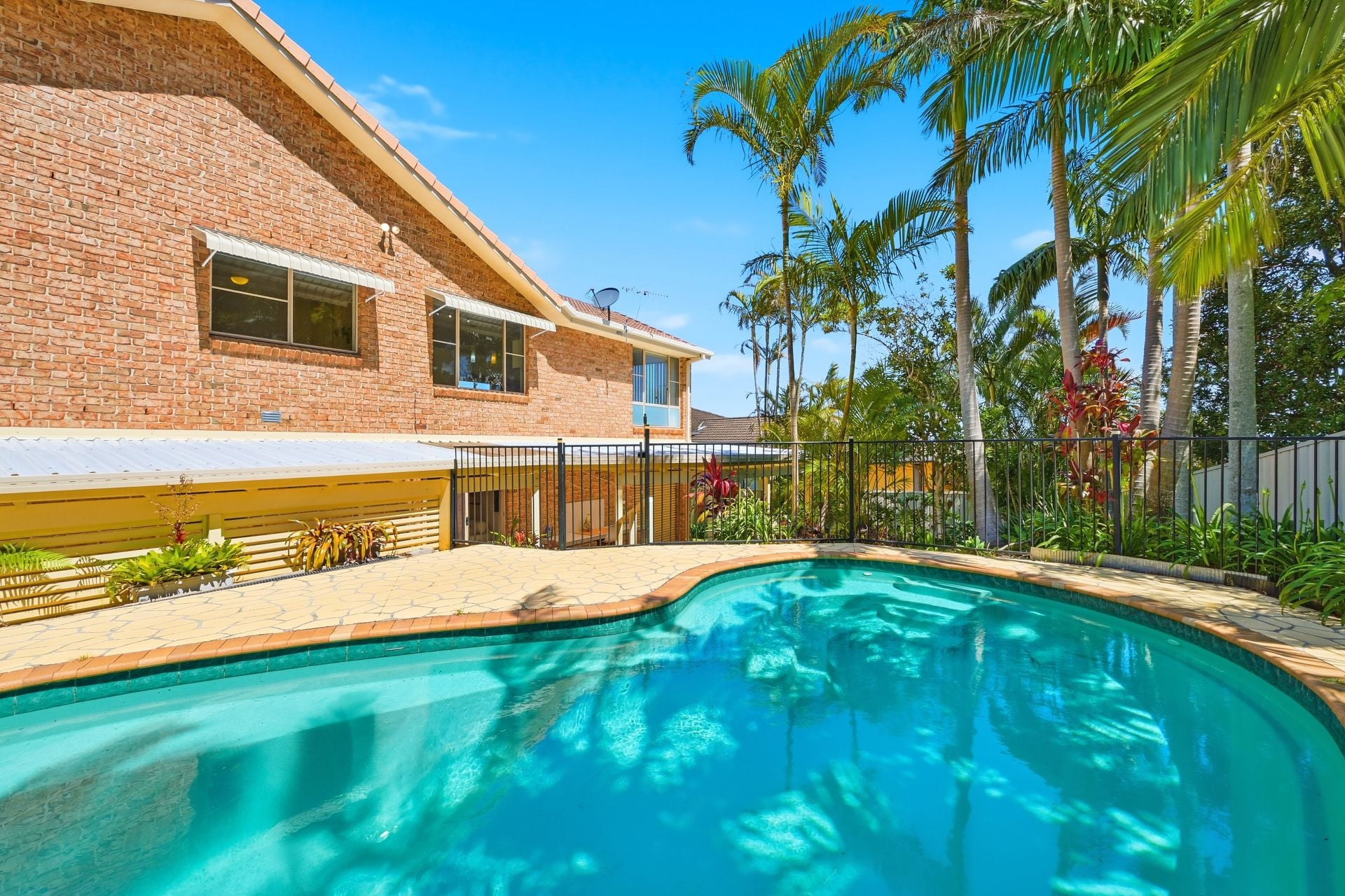 Outdoor areas are thoughtfully balanced at both the front and rear. The elevated front deck captures sweeping views across Lighthouse Beach with glimpses of the Pacific, while the rear garden offers privacy, greenery and a sheltered alfresco space ideal for year-round enjoyment. The in-ground swimming pool, framed by tropical planting and complemented by a timber gazebo, creates a resort-style retreat that feels wonderfully secluded.