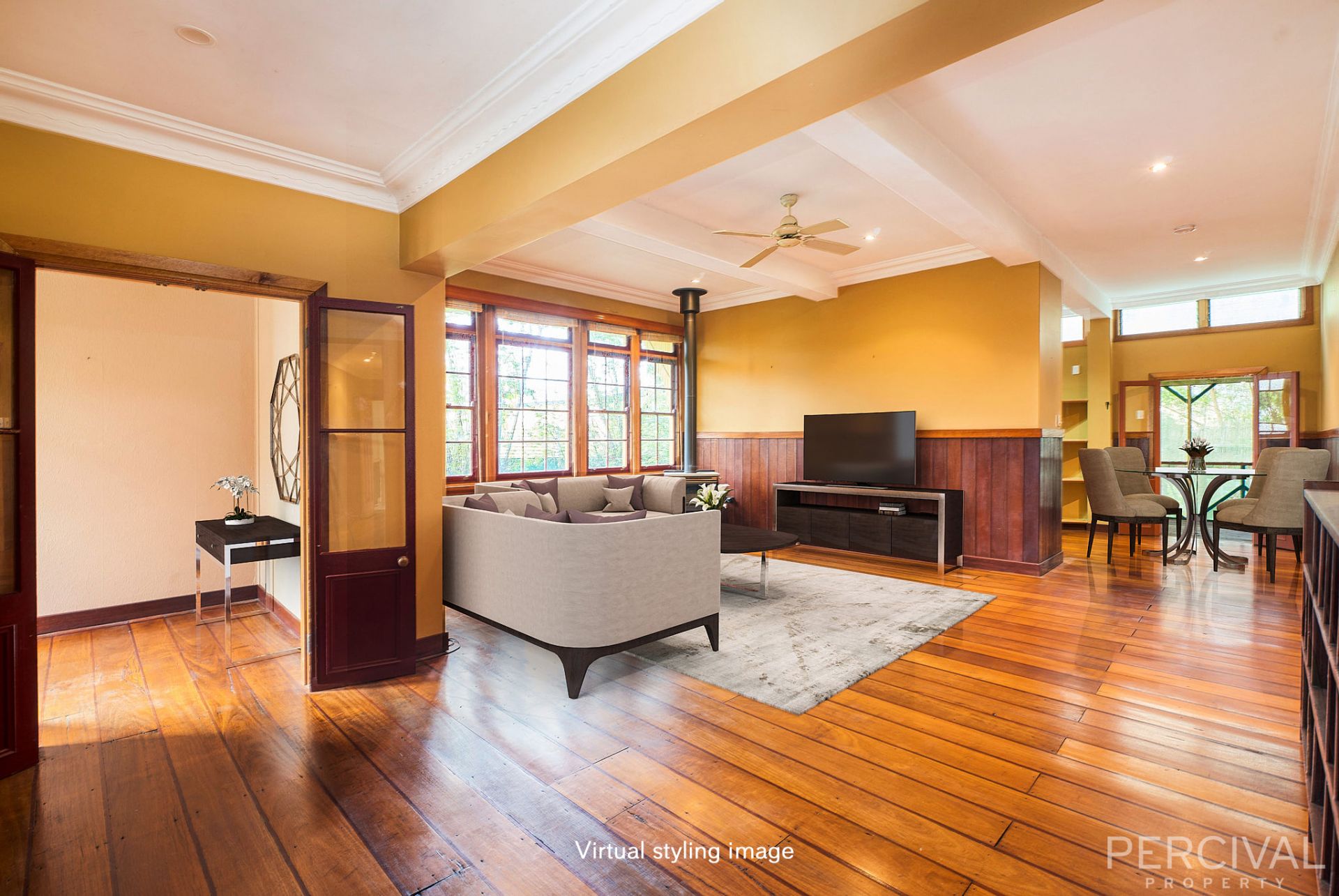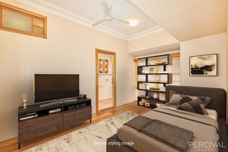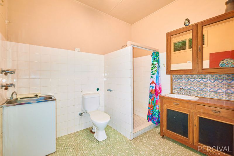 11ft high ceilings with decorative cornices and the eclectic mix of Tallowwood and Mahogany flooring add to the homes character and charm. For year-round comfort there is RC AC and ceiling fans.