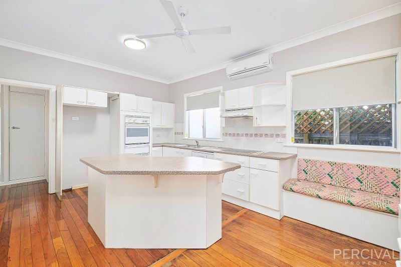 The renovated kitchen with built-in banquet seating is equipped with electric bench top cooking, wall oven and dishwasher, and well placed to service a generous dining area and large covered outdoor patio.